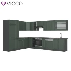 Vicco Eckküchenzeile Fame-Line Anthrazit Grün-Gold Landhaus 227 X 287 Cm Holzwerkstoff