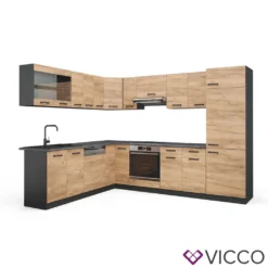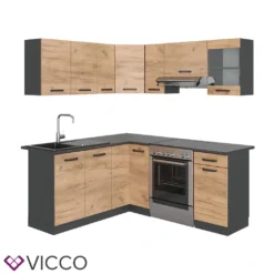 Vicco Eckküchenzeile + Arbeitsplatten R-Line Anthrazit Goldkraft 187 X 167 Cm Holzwerkstoff