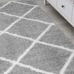 Hochflor Teppich, Weicher Wohnzimmer Shaggy Skandinavischer Stil Raute, Maße:160×220 Cm