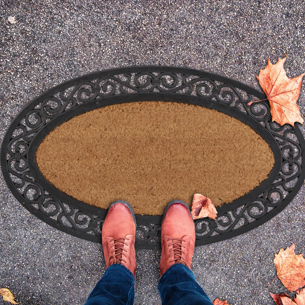 Relaxdays Ovale Fußmatte Gummi & Kokos