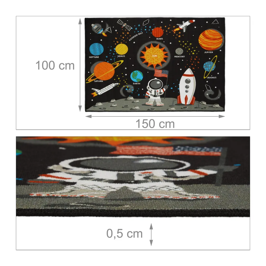 | Zusätzliche Varianten | relaxdays Kinderteppich Weltkarte 150×100 cm, relaxdays Weltall Teppich für Kinder 150×100 cm |