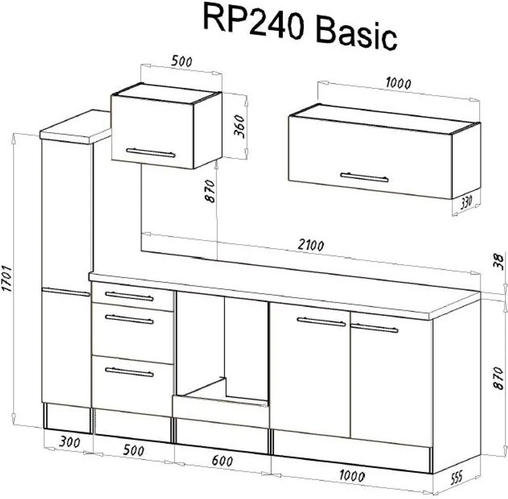 Respekta Küchenzeile Küche Küchenblock Einbauküche Hochglanz 240cm Eiche Schwarz