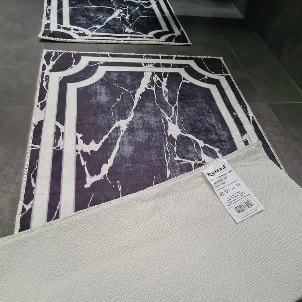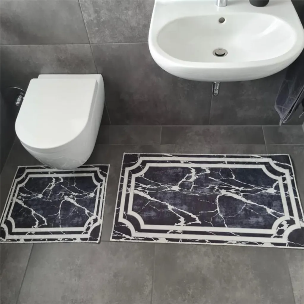 Roland Badematten WC Teppich Set Rechteck In Verschiedenen Farben Black/Marmor-Optik