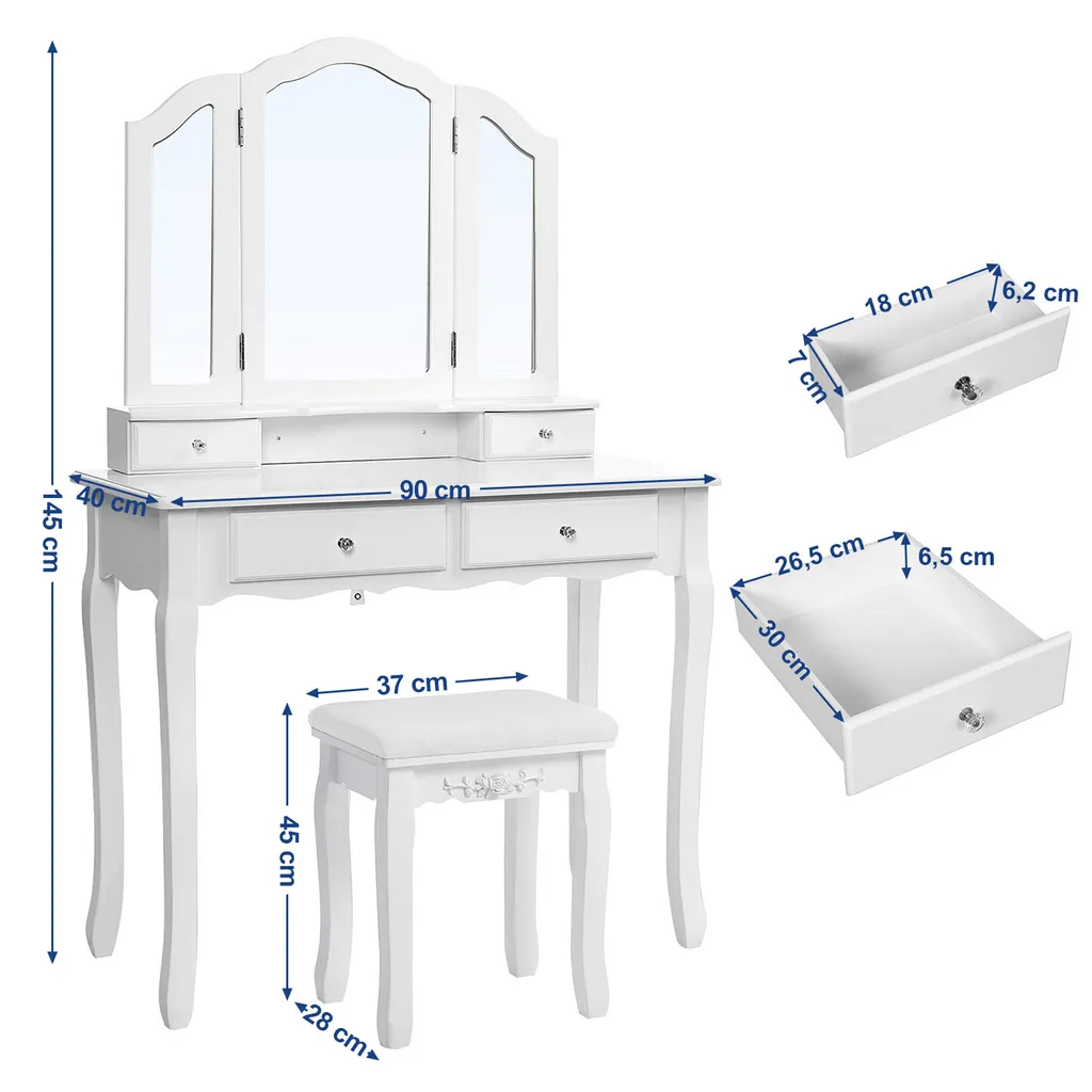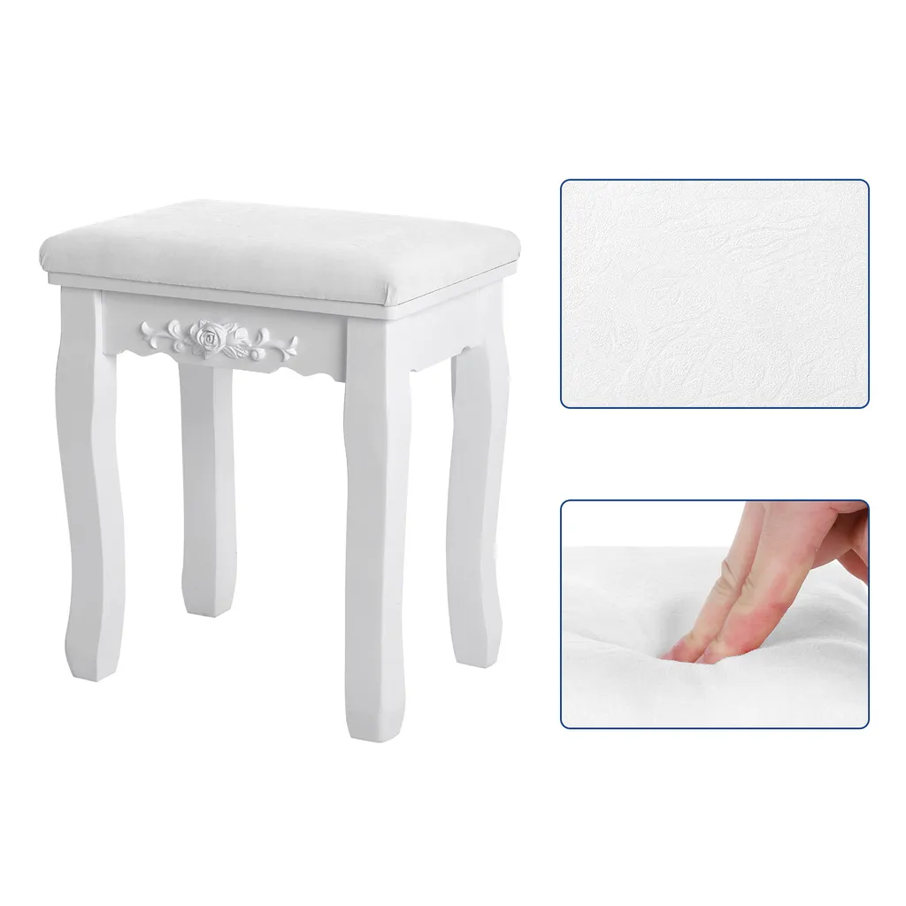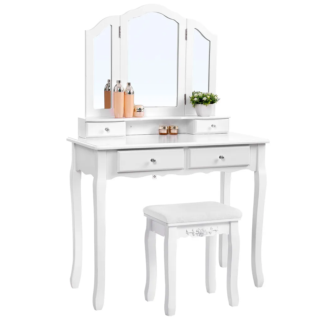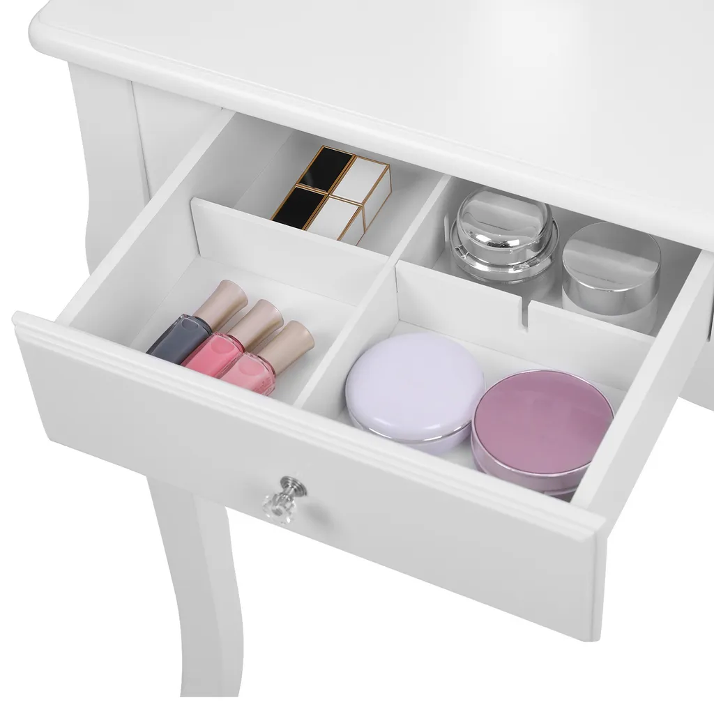 Schminktisch Mit Spiegel Und Hocker Frisiertisch Mit 4 Schubladen Inkl. 2 Stück Unterteiler Kosmetiktisch Mit Kippsicherung Weiß SONGMICS RDT07W