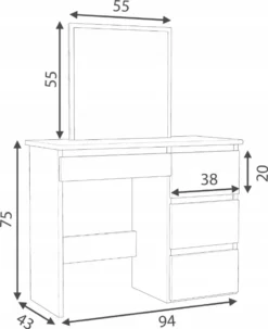 Schminktisch Frisiertisch Kosmetiktisch Spiegel Kommode Spiegel 4 Schubladen Sonoma Isabell Beta 0