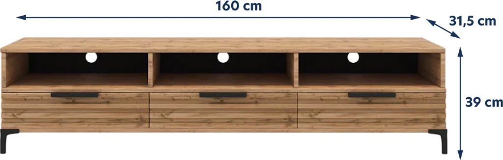 | Zusätzliche Varianten | Selsey TV-Lowboard RIKKE 3D – TV-Schrank in Wotan Eiche mit 3D-Fronten in Matt, stehend, 160 cm breit, Selsey TV-Lowboard RIKKE 3D – TV-Schrank in Wotan Eiche mit LED-Beleuchtung und 3D-Fronten in Matt, stehend, 160 cm breit |