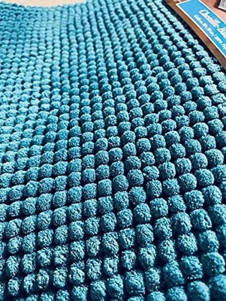 Sensino Chenille Badematte Blau Mit 3D Mesh-Rücken, Ca. 50 X 80 Cm