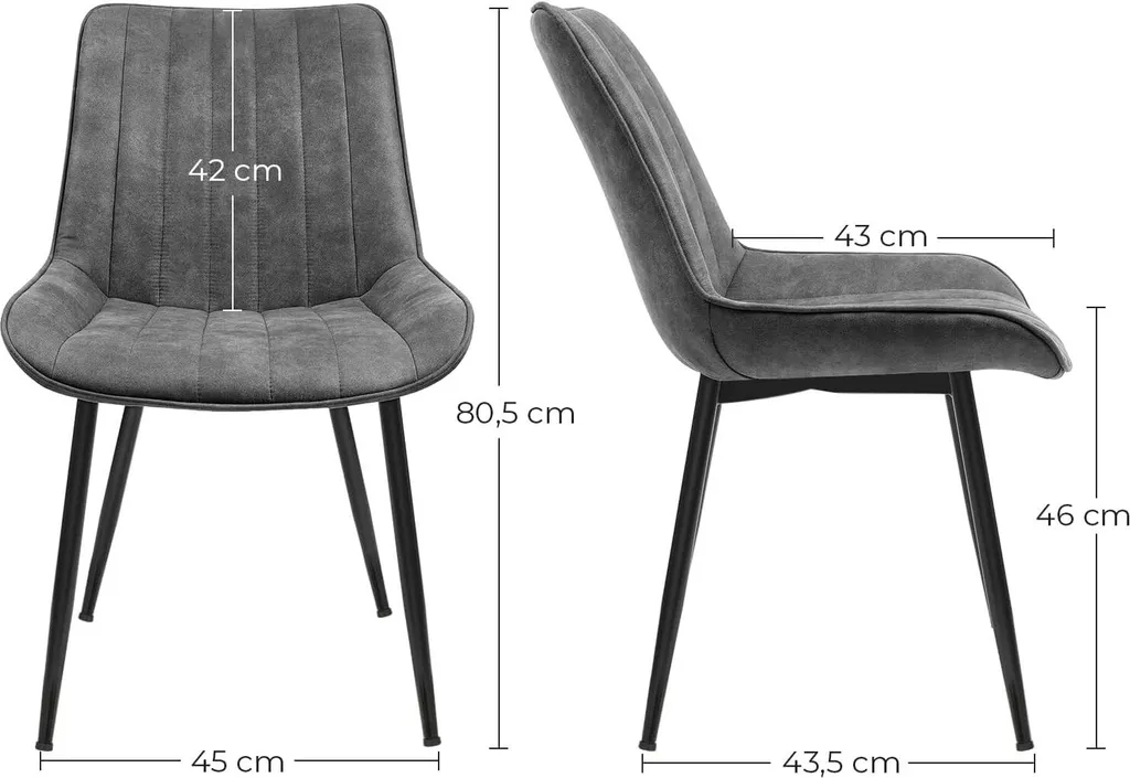 SONGMICS 2er Set Esszimmerstühle Küchenstuhl Polsterstuhl Mit Metallbeinen Esszimmerstuhl Küche Esszimmer Kunstlederbezug Bis 110 Kg Belastbar Grau LDC090G01