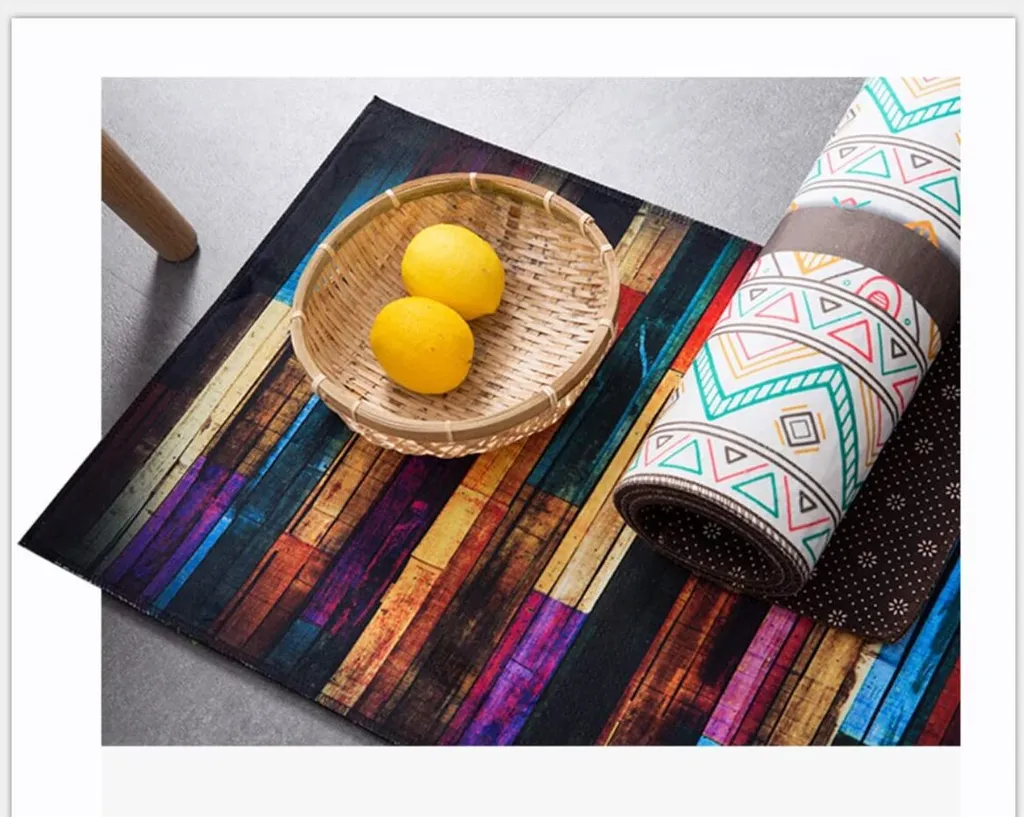 Teppich Läufer Flur Küche Rutschfest Waschbar Holzbrettmuster Bunter Modern Rutschfest Waschbar Vintage Kücheläufer Teppichläufer Polyester Meterware Anpassbar
