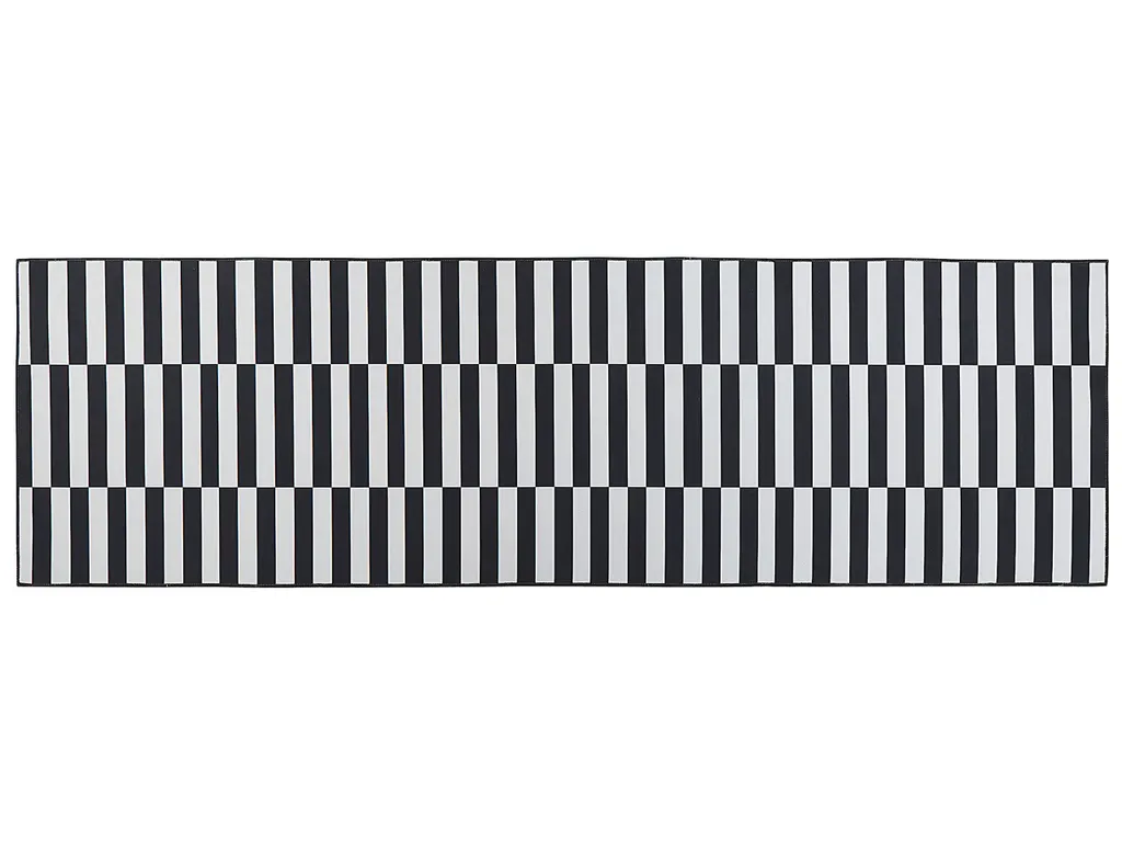 Teppich Läufer Schwarz / Weiß Stoff 60 X 200 Cm Rechteckig Mit Streifenmuster Geometrisch Rutschfest Modern Vorleger Flur Küche Schlafzimmer