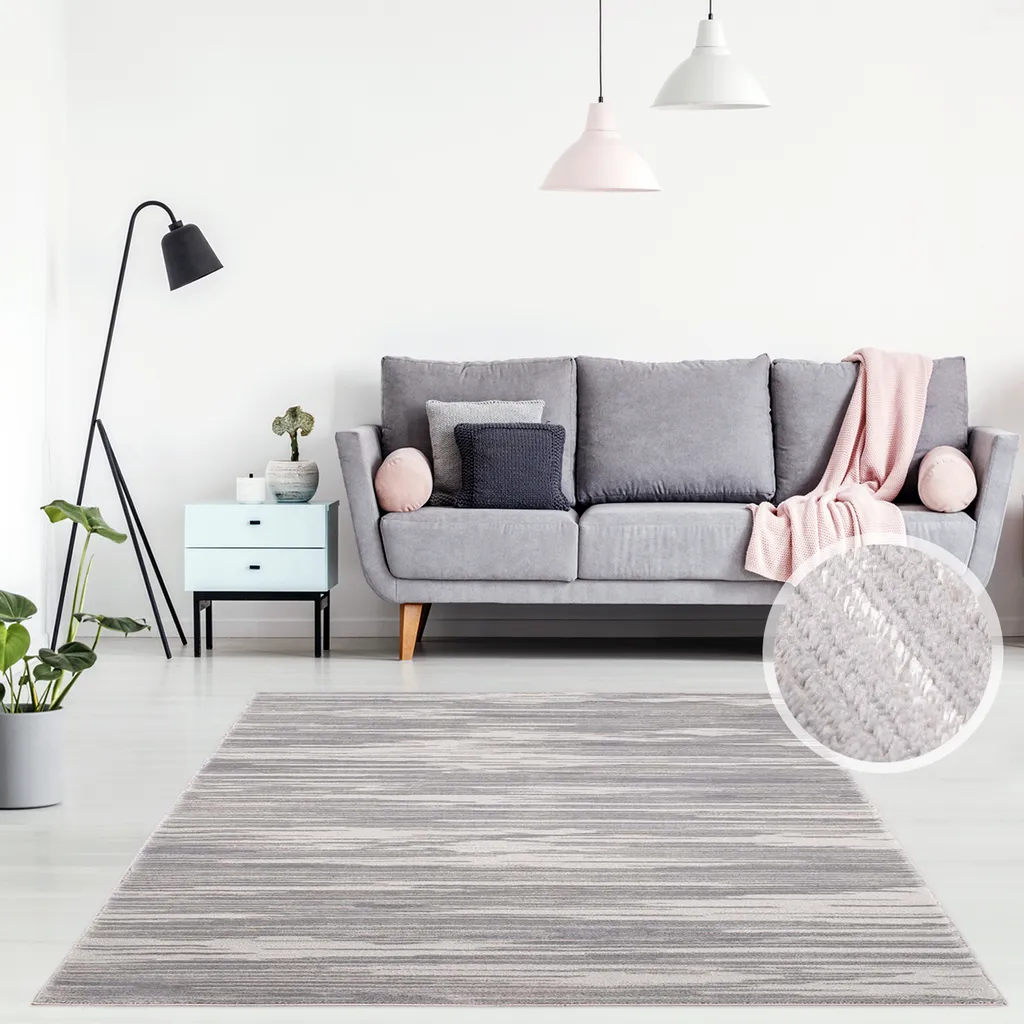 Teppich Modern Designer Flachflor Mit Streifen, Meliert, Hoch-Tief-Effekt In Grau Für Wohnzimmer Und Schlafzimmer, Größe In Cm:200 X 290 Cm
