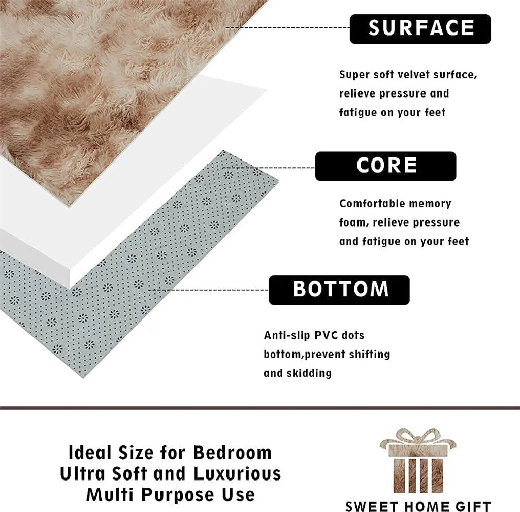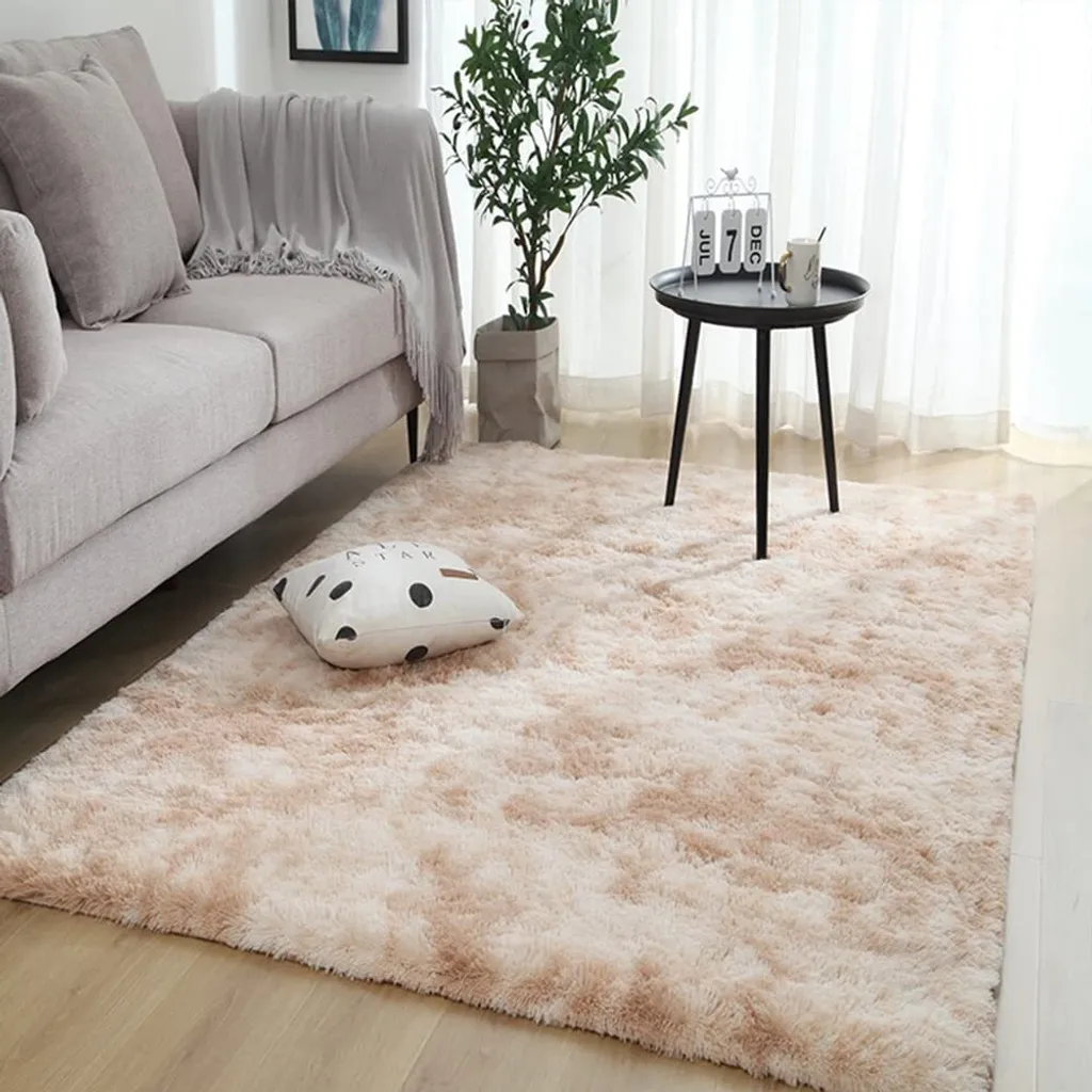 Teppich Wohnzimmer, Weicher Samt Hochflor Wohnzimmerteppich Teppiche Antirutschunterlage Teppiche Für Wohnzimmer Schlafzimmer Matten,160x200cm,Beige