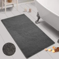 Badematte 40x60cm Badteppich Badvorleger Duschvorleger Badeteppich Weich Teppich, Farbe:Grau