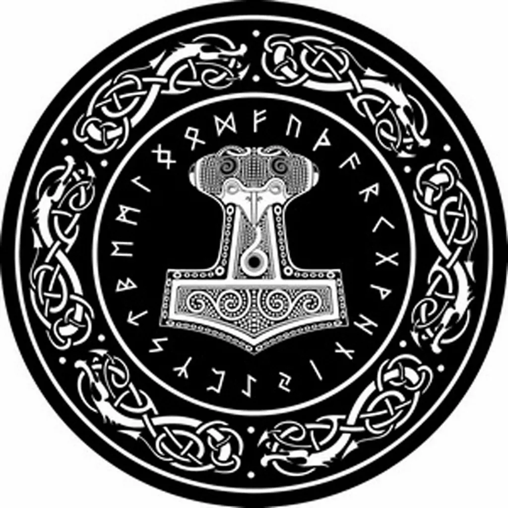Thors Hammer Teppich ø 90cm Rundteppich XL Thor Valhalla Fussmatte Wikinger Walhalla Runen Logo Fußmatte Schmutzmatte Türabstreifer Türmatte Odin Fußabstreifer Doormat