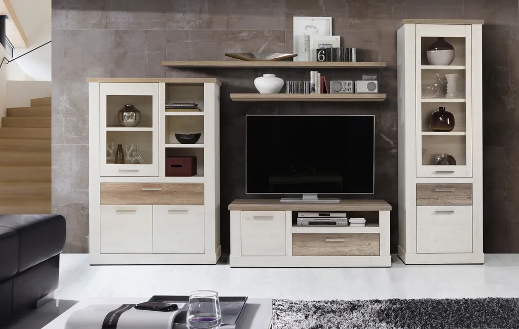TV-Board „Duro“ Aus Holzwerkstoff, Nachbildungfolie, Metall In Korpus Pinia Weiss Kombiniert Mit Eiche Antik Mit Einer Schublade Und Einer Tür. Abmessungen (BxHxT) 139,6x52x52 Cm