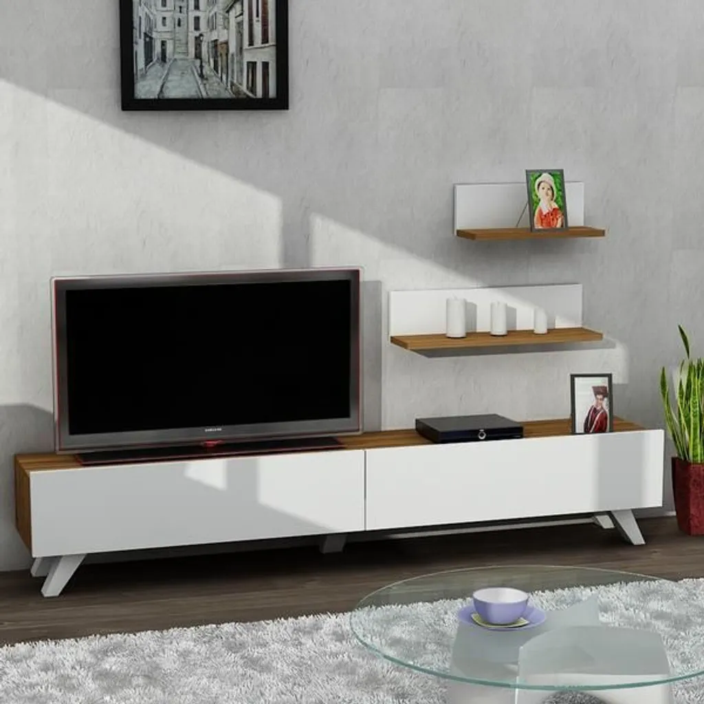 Tv Lowboard Weiß – Walnuss Amerika „“