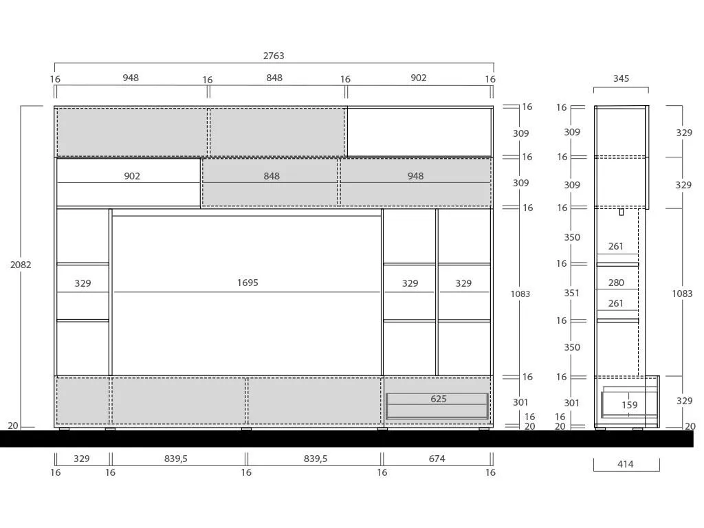 TV-Möbel TV-Wand Mit Stauraum – Weiß & Betonfarben – MAJORIS