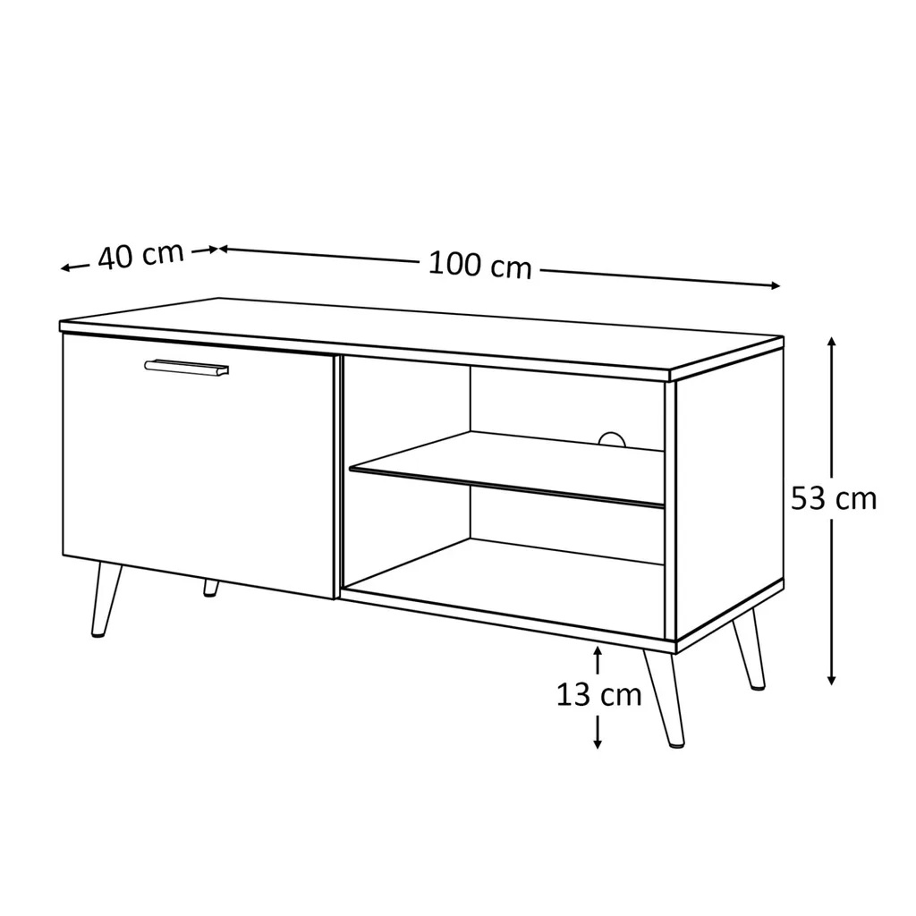 TV Schrank Dronninglund Lowboard Wohnzimmer TV Board Schwarz Holz-Optik Fernsehtisch Mit Tür