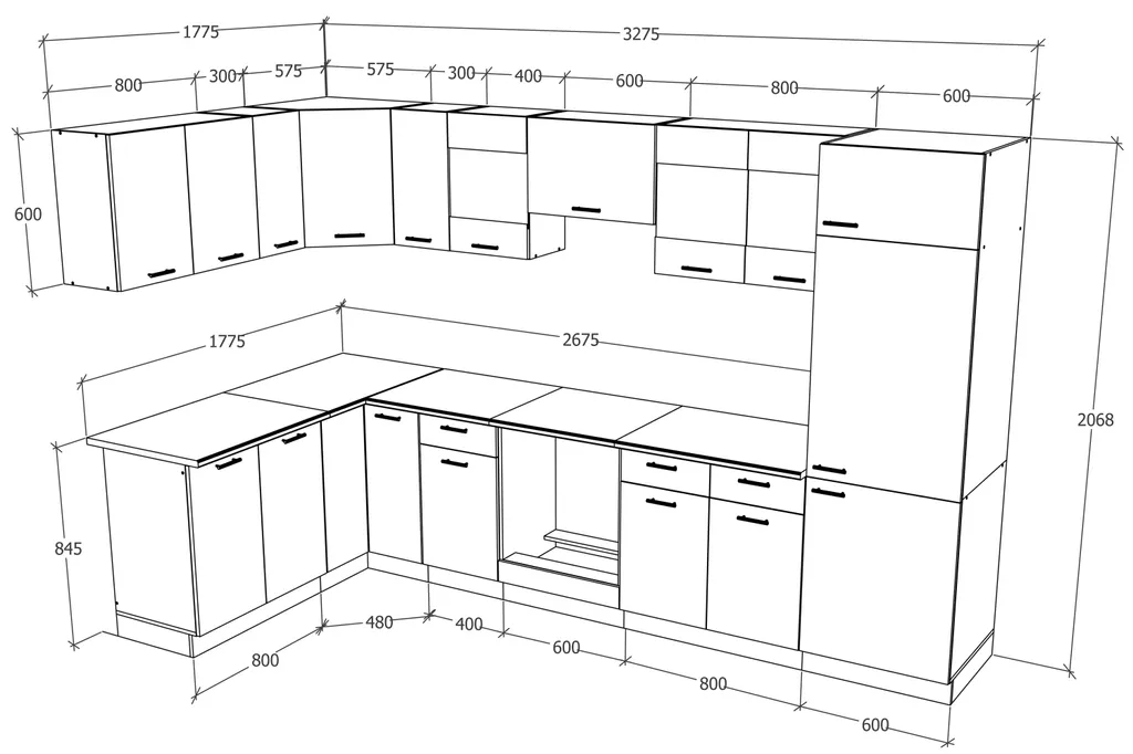 WinkelKüche Alina 310×170+ L-Form-Küchenzeile Eckküchenblock Weißlack