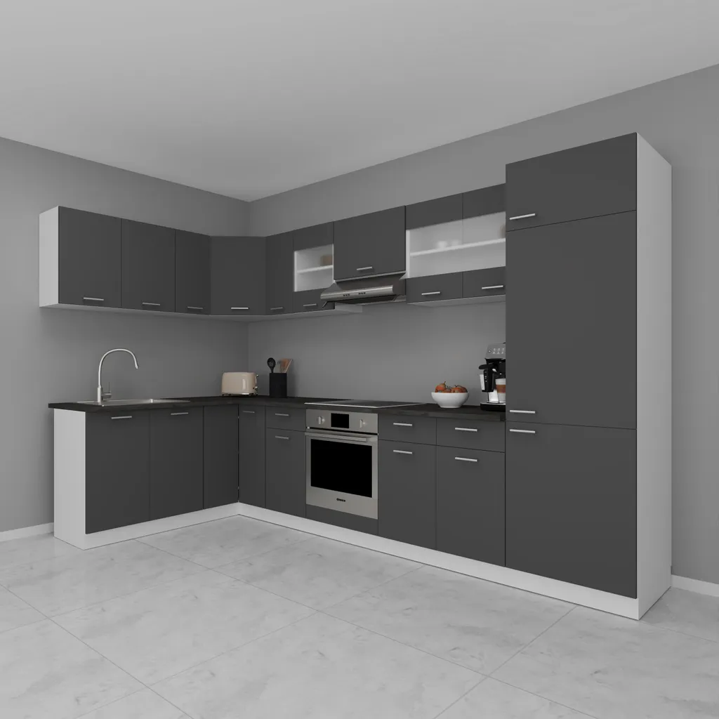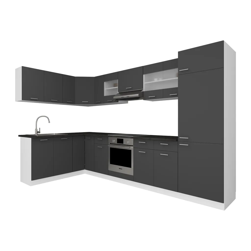 VCM 13-tlg Winkelküche Eckküche Küchenzeile Küchenblock Komplettküche 328 X 178 Cm Esilo Weiß / Anthrazit