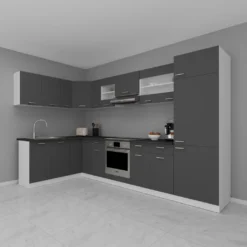 Schreibe die erste Rezension für „VCM 13-tlg Winkelküche Eckküche Küchenzeile Küchenblock Komplettküche 328 X 178 Cm Esilo Weiß / Anthrazit“ Antwort abbrechen