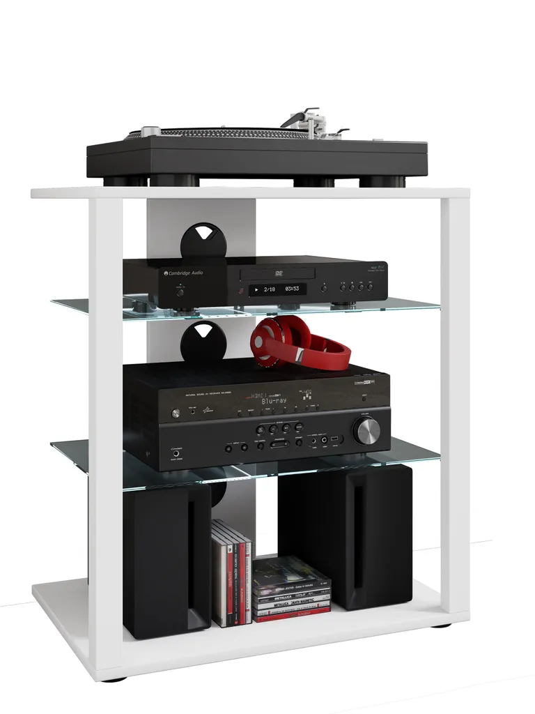 VCM Hifi Möbel Rack Schrank Phono Regal Glas Phono Mediaregal Folas Weiß