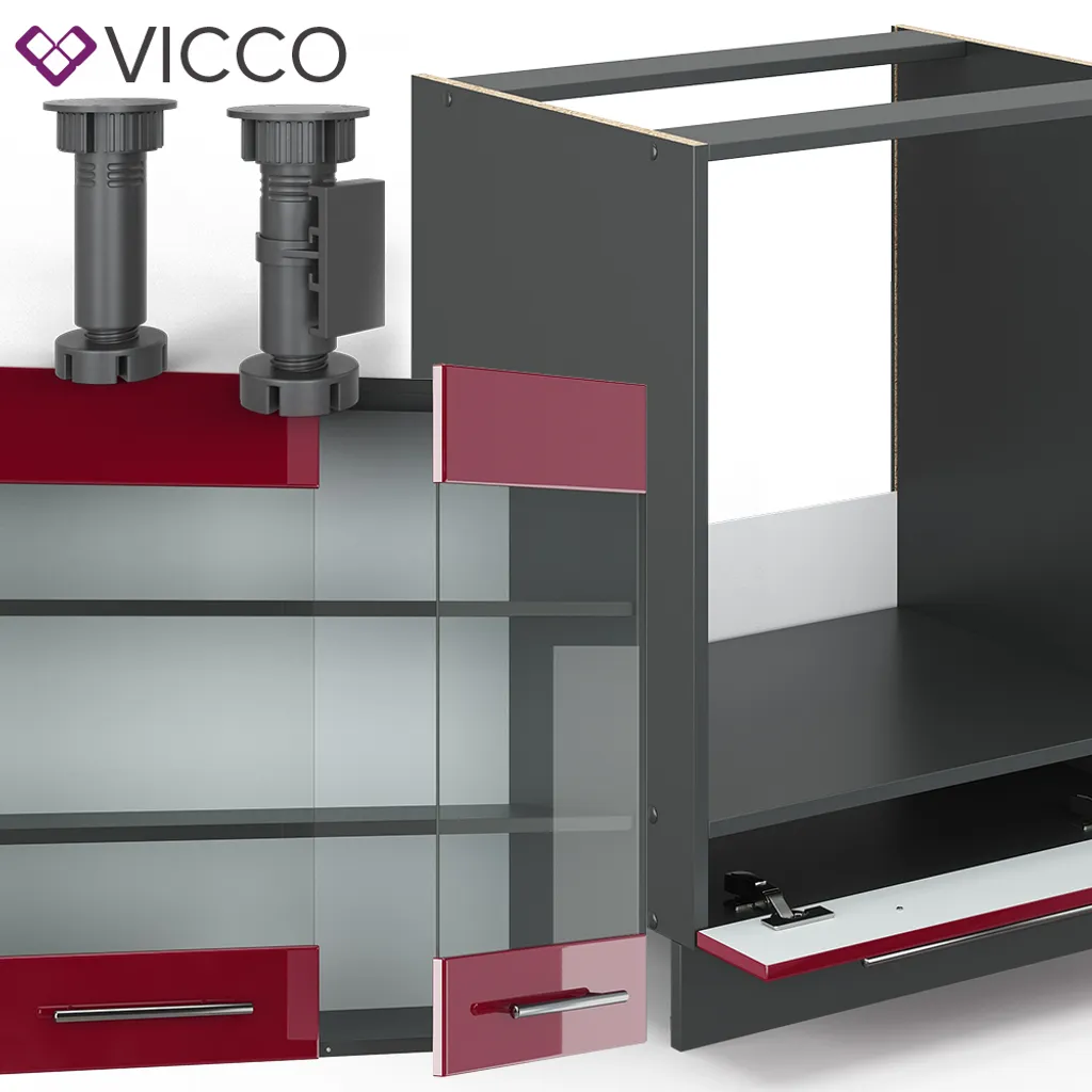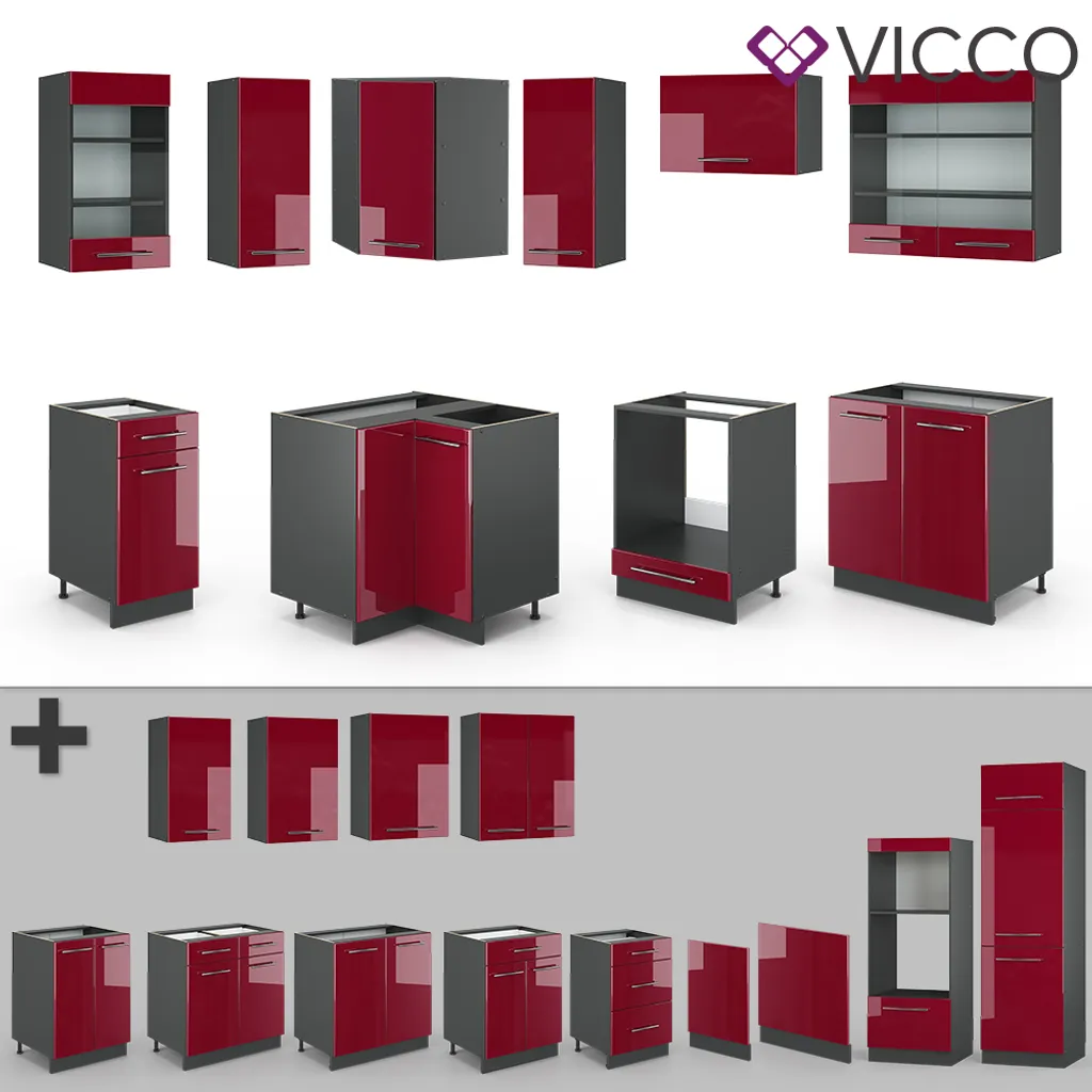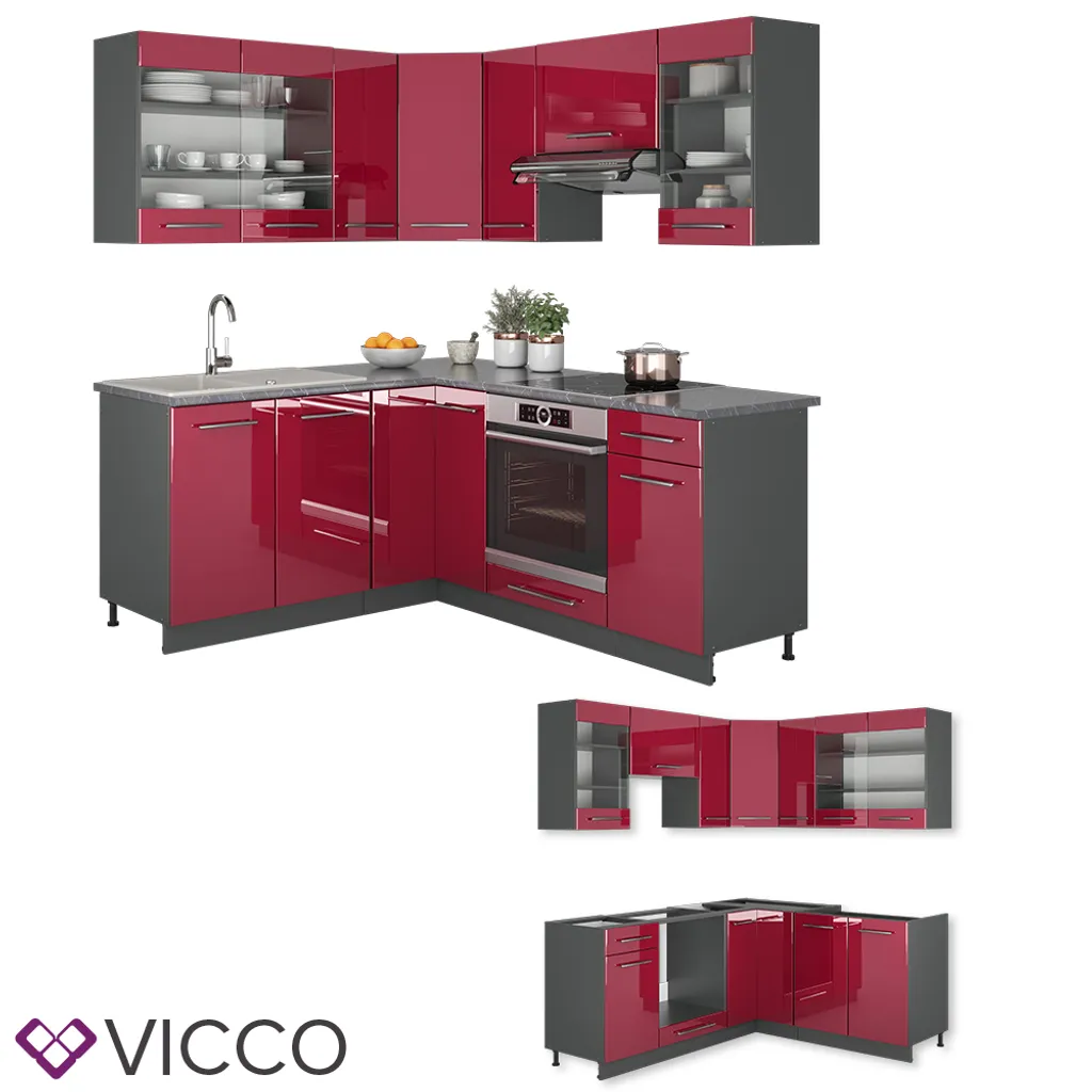Vicco Eckküchenzeile Fame-Line Anthrazit Bordeaux-Rot Hochglanz 160,5 X 190 Cm Holzwerkstoff