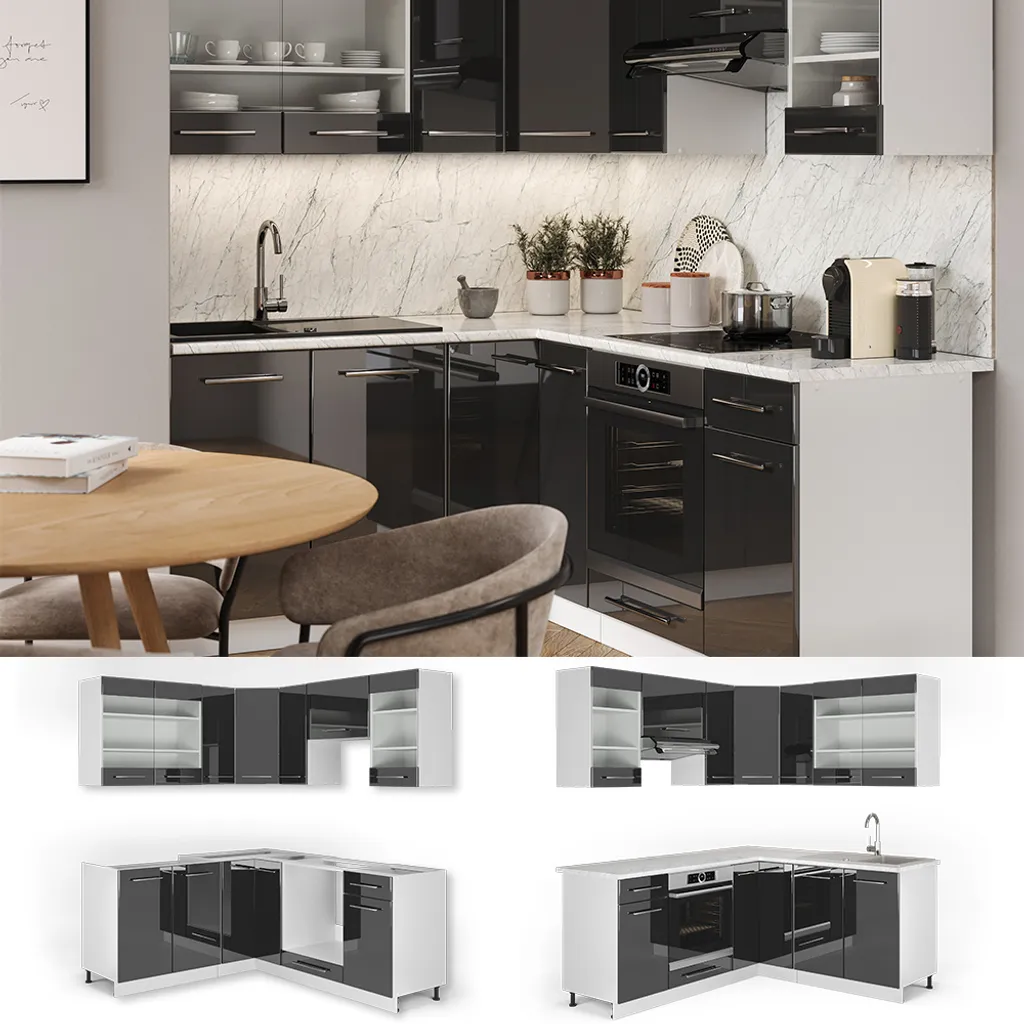 Vicco Eckküchenzeile Fame-Line Weiß Anthrazit Hochglanz 160,5 X 190 Cm Holzwerkstoff