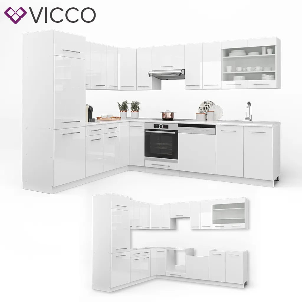 | Zusätzliche Varianten | Vicco Eckküchenzeile Fame-Line Weiß Hochglanz 160,5 x 180,5 cm Holzwerkstoff, Vicco Eckküchenzeile Fame-Line Weiß Hochglanz 227 x 287 cm Holzwerkstoff |