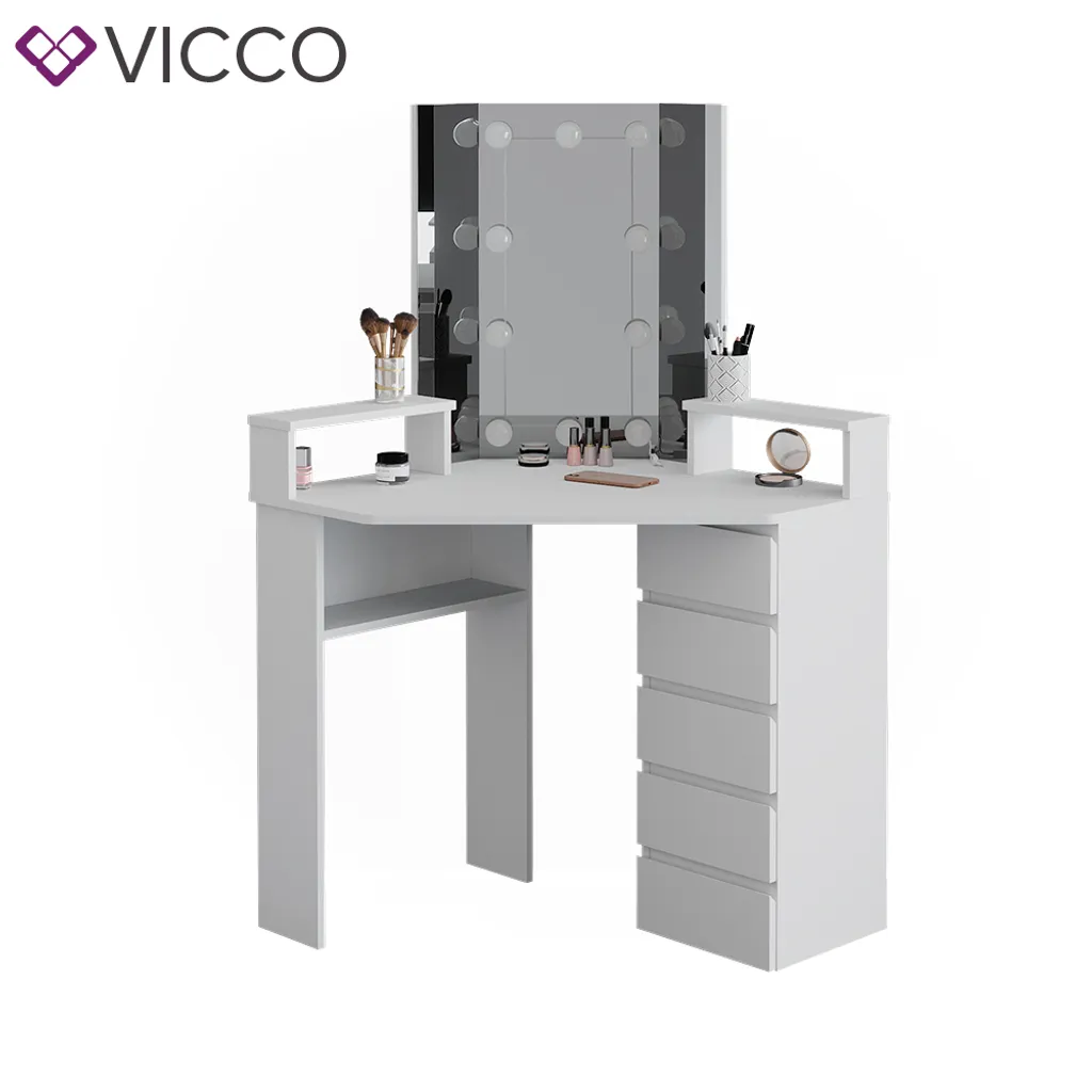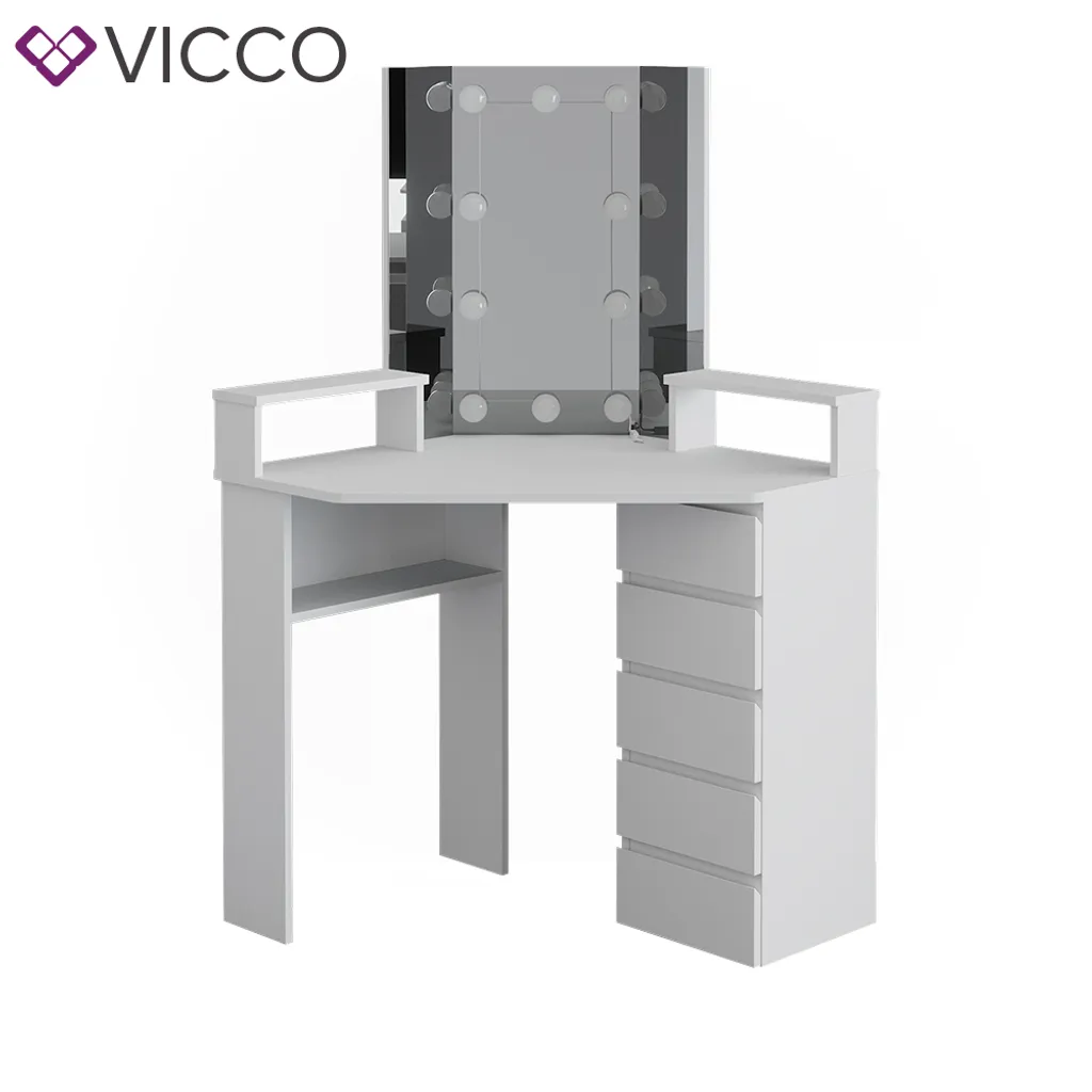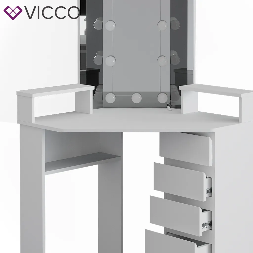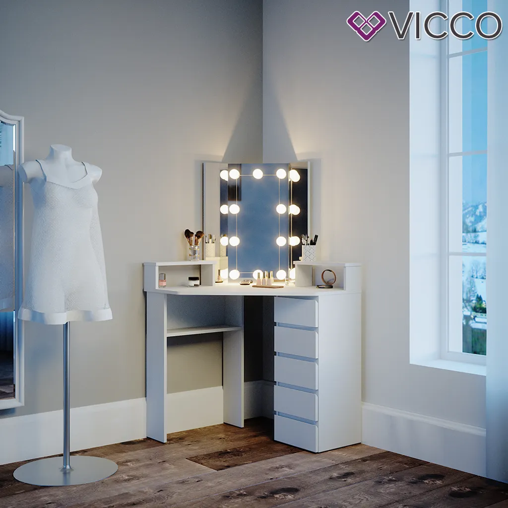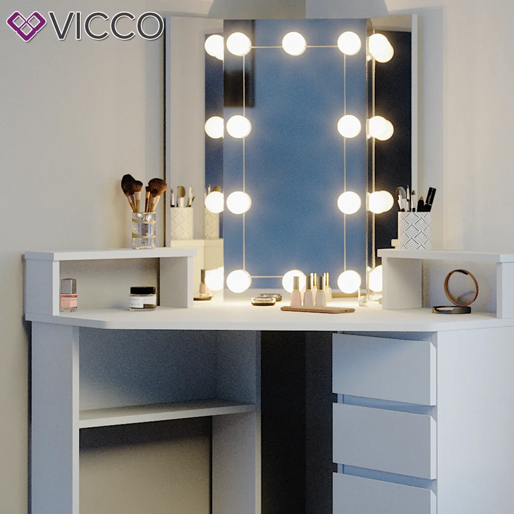 Vicco Eckschminktisch + LED Tilda Weiß 113,3 X 140 X 62,85 Cm Holzwerkstoff