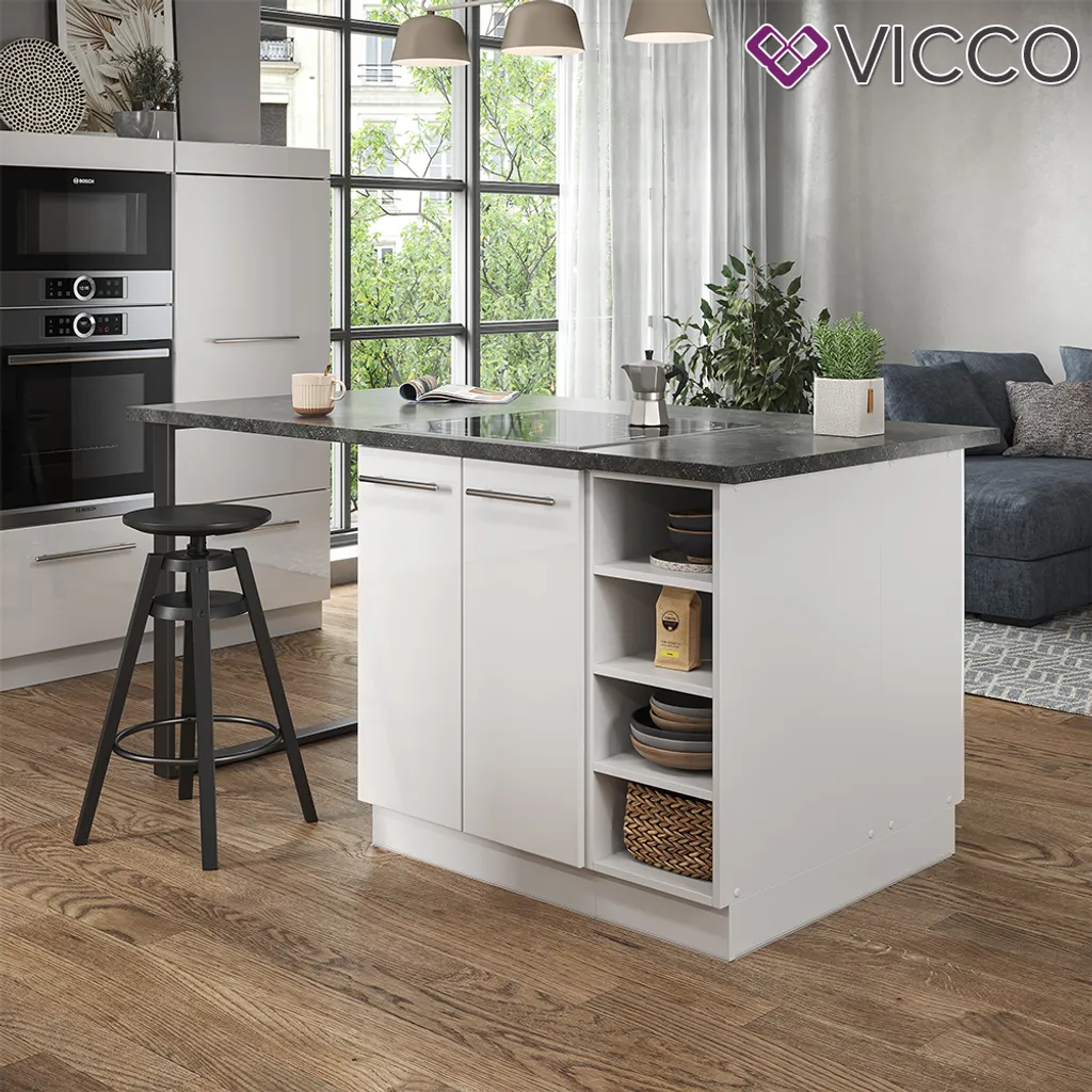 Vicco Kücheninsel Fame-Line Weiß Hochglanz 90 Cm Holzwerkstoff