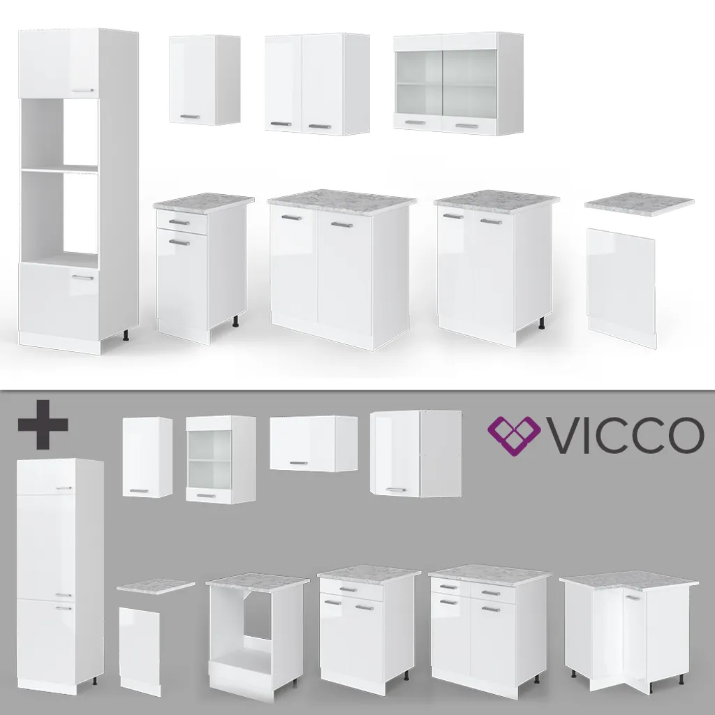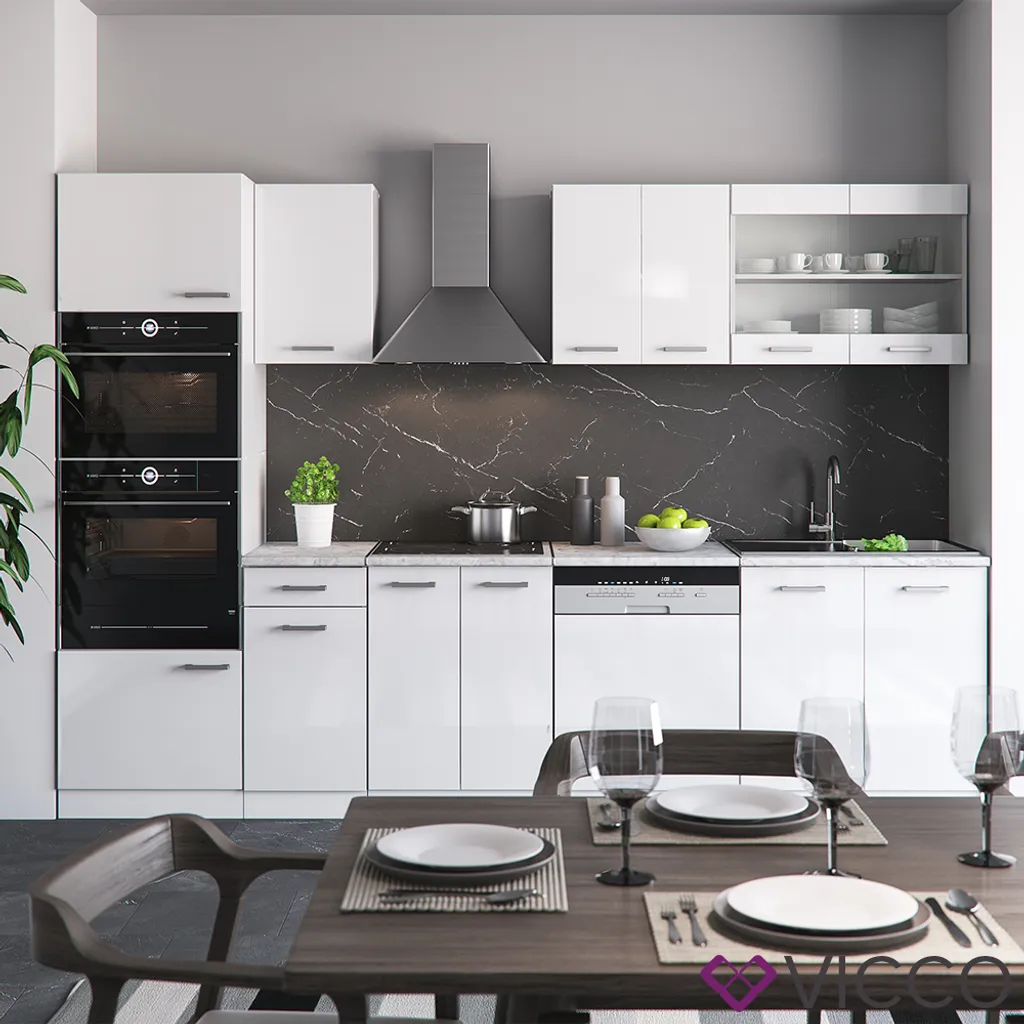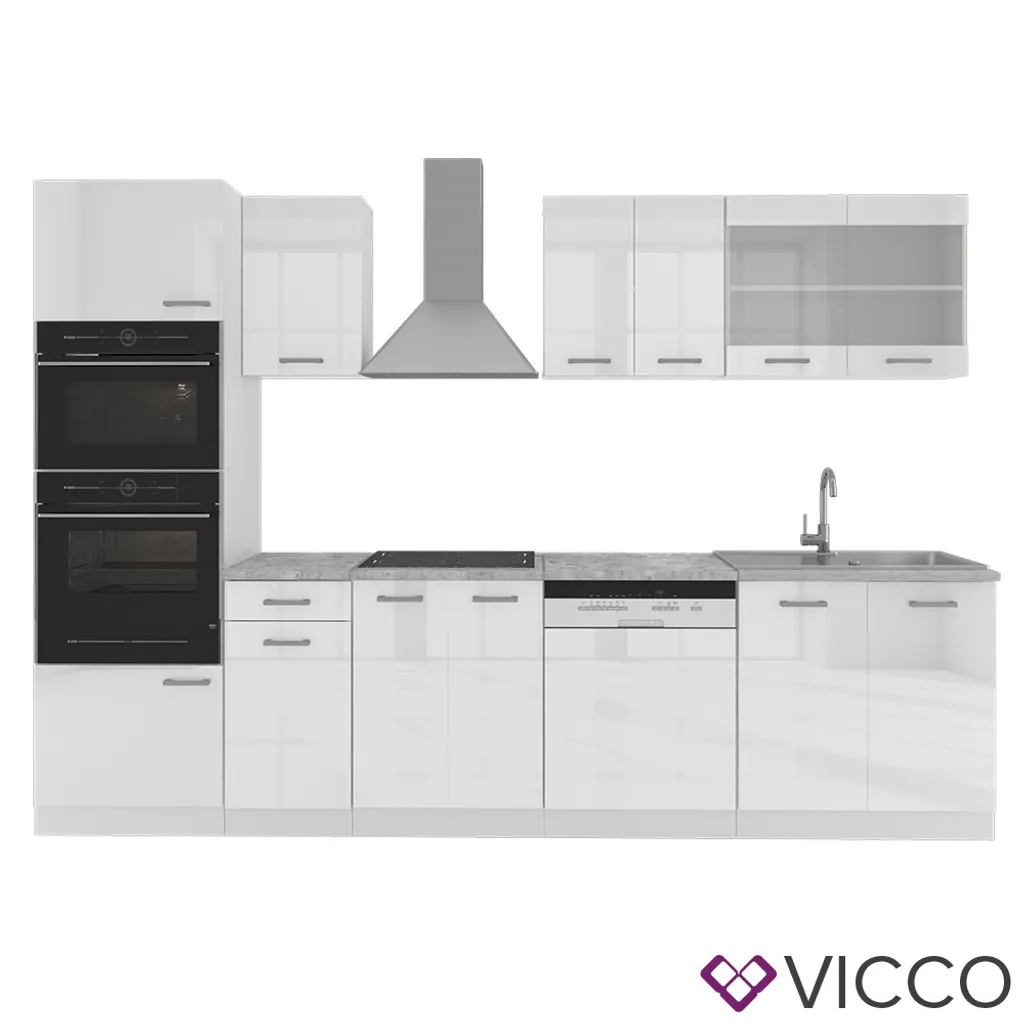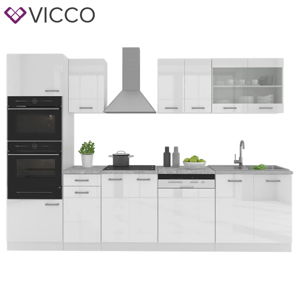 Vicco Küchenzeile + Arbeitsplatten R-Line Weiß Hochglanz 300 Cm Holzwerkstoff