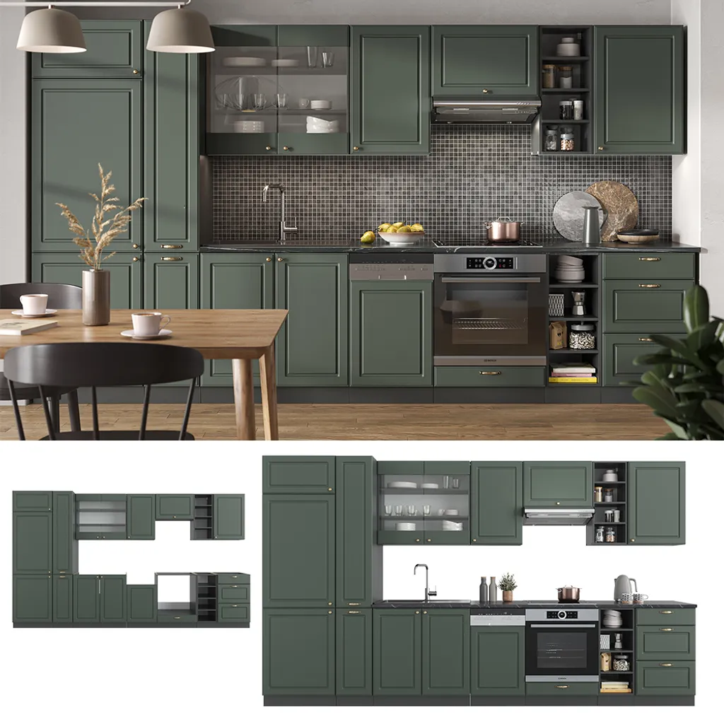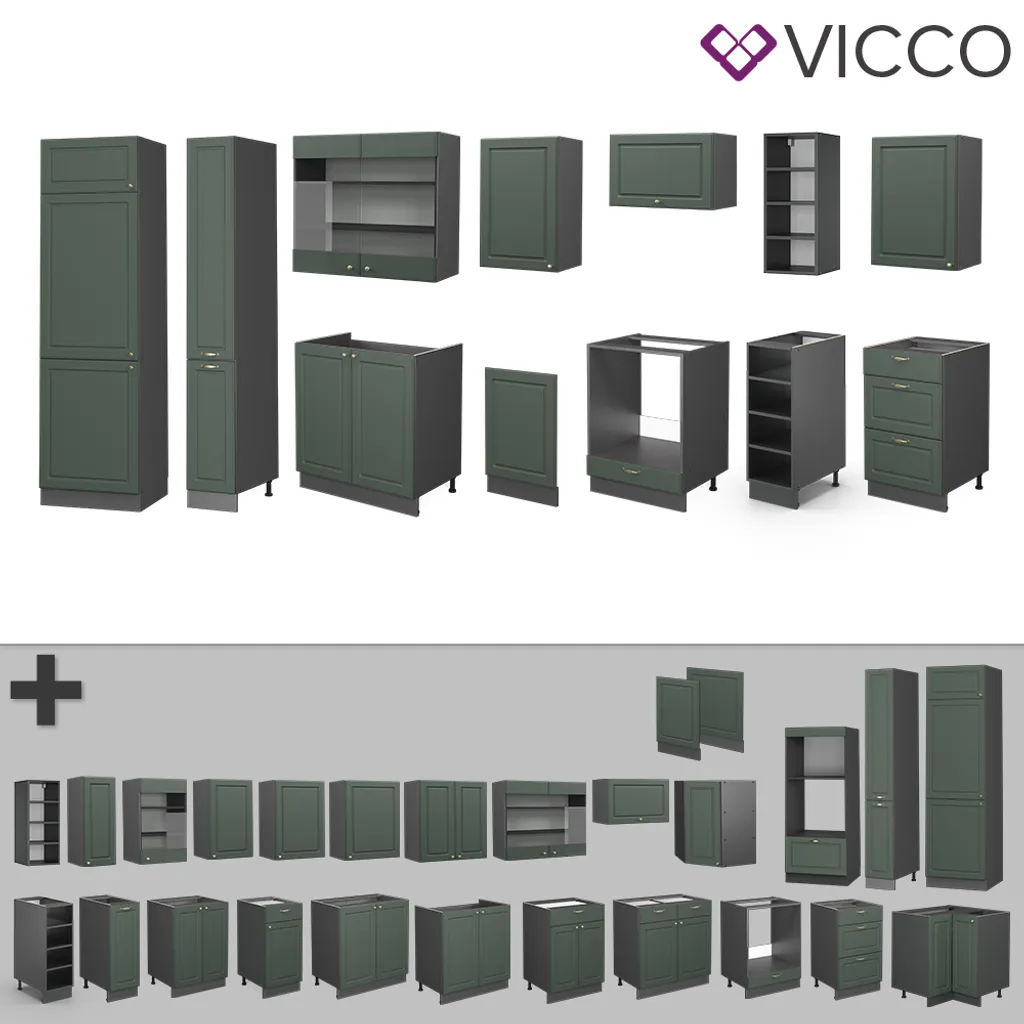Vicco Küchenzeile Fame-Line Anthrazit Grün-Gold Landhaus 355 Cm Holzwerkstoff