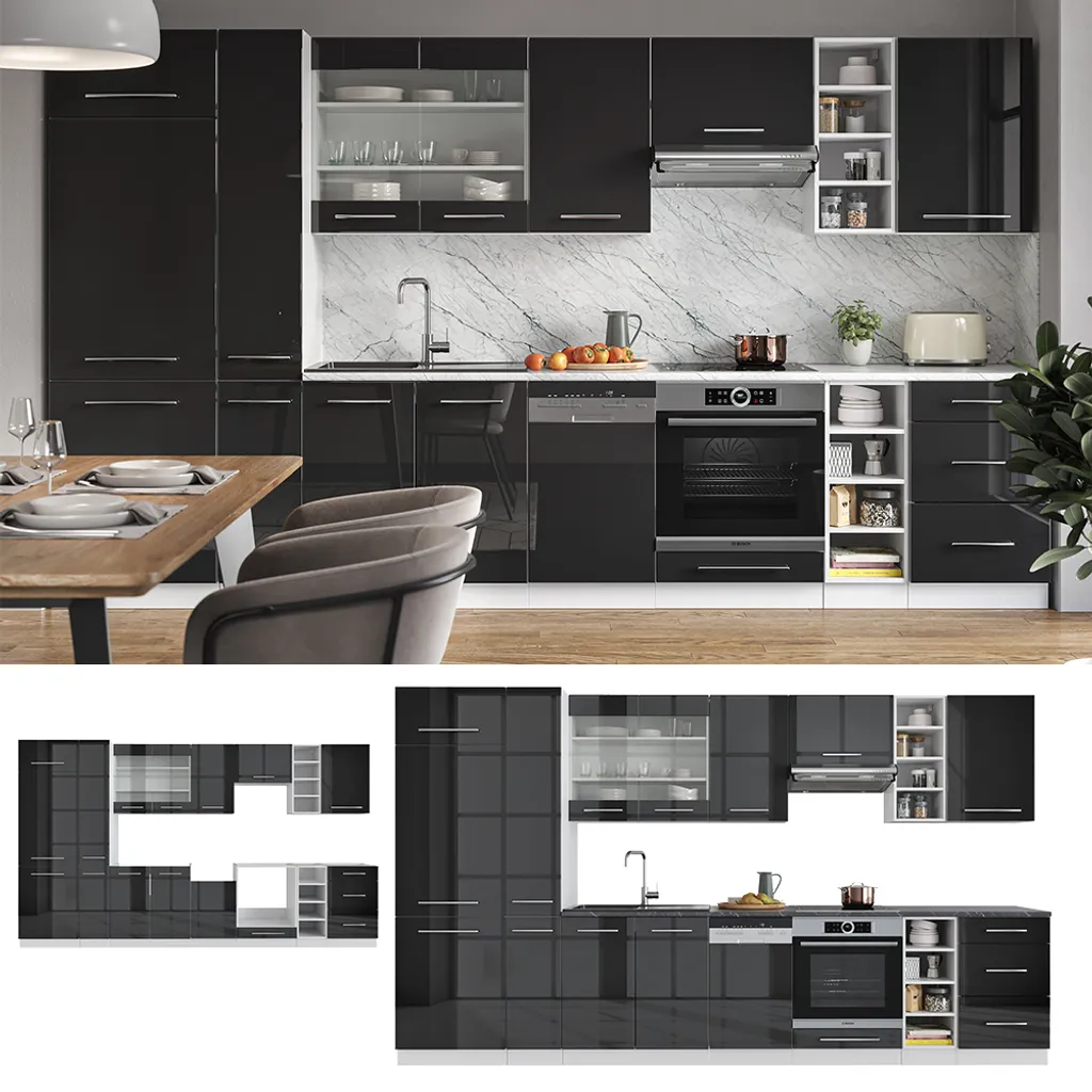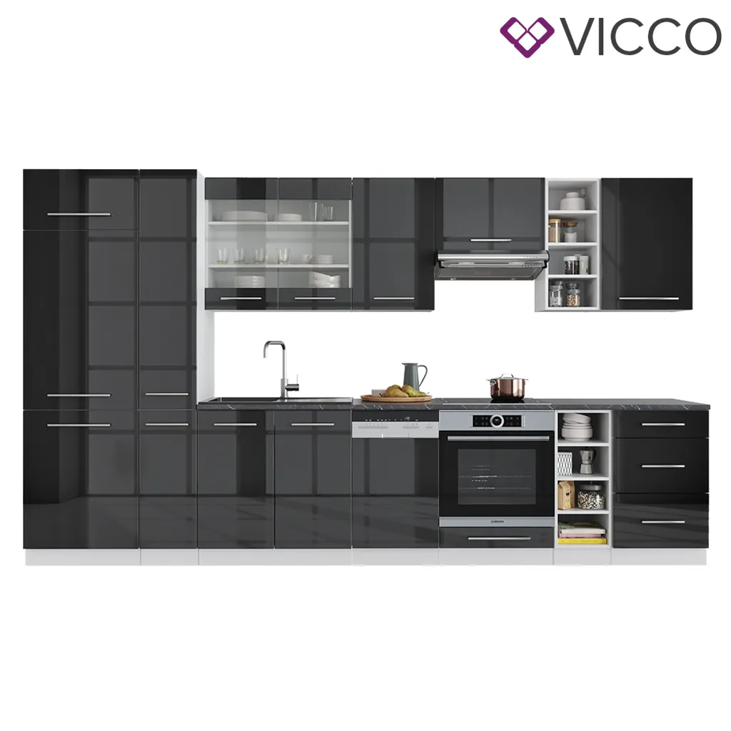 Vicco Küchenzeile Fame-Line Weiß Anthrazit Hochglanz 355 Cm Holzwerkstoff