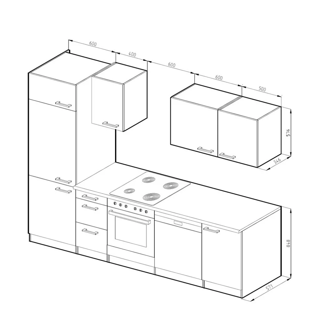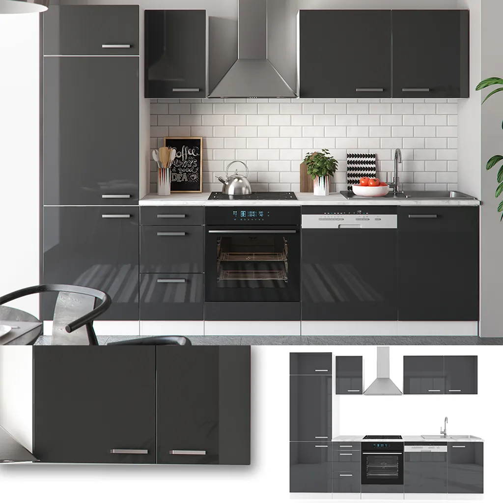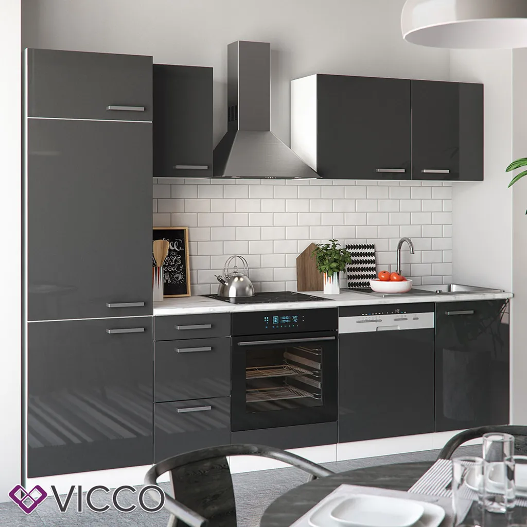Vicco Küchenzeile Optima Anthrazit Hochglanz 270cm Holzwerkstoff