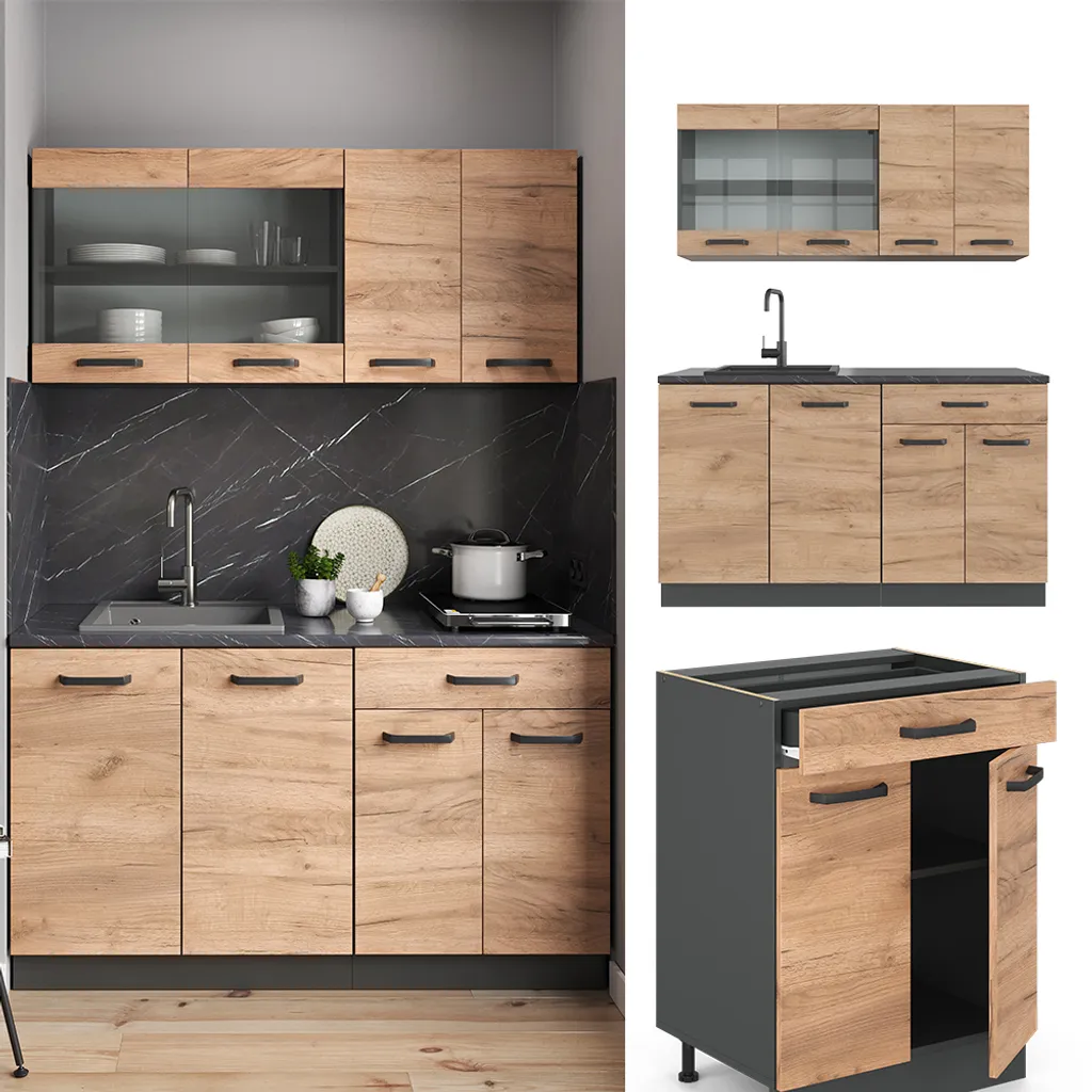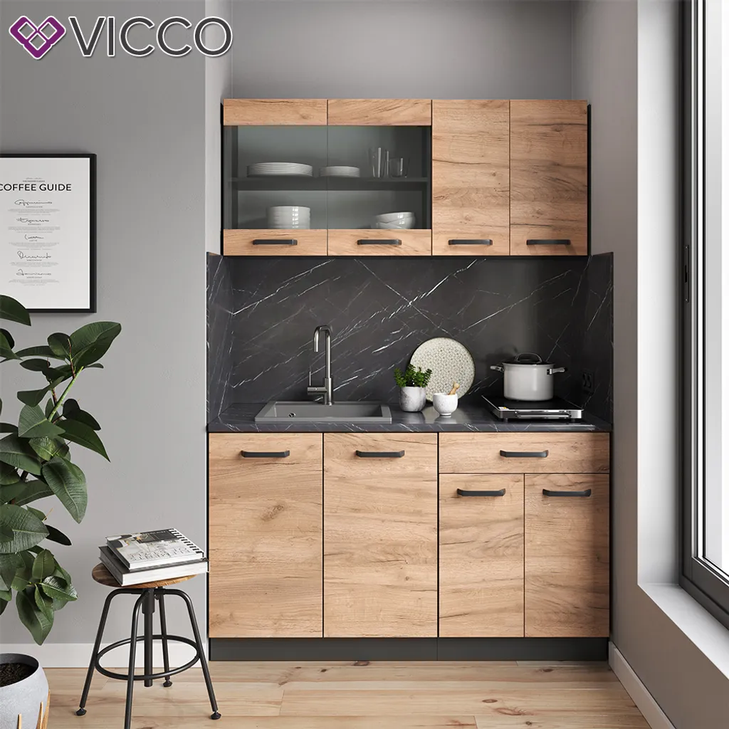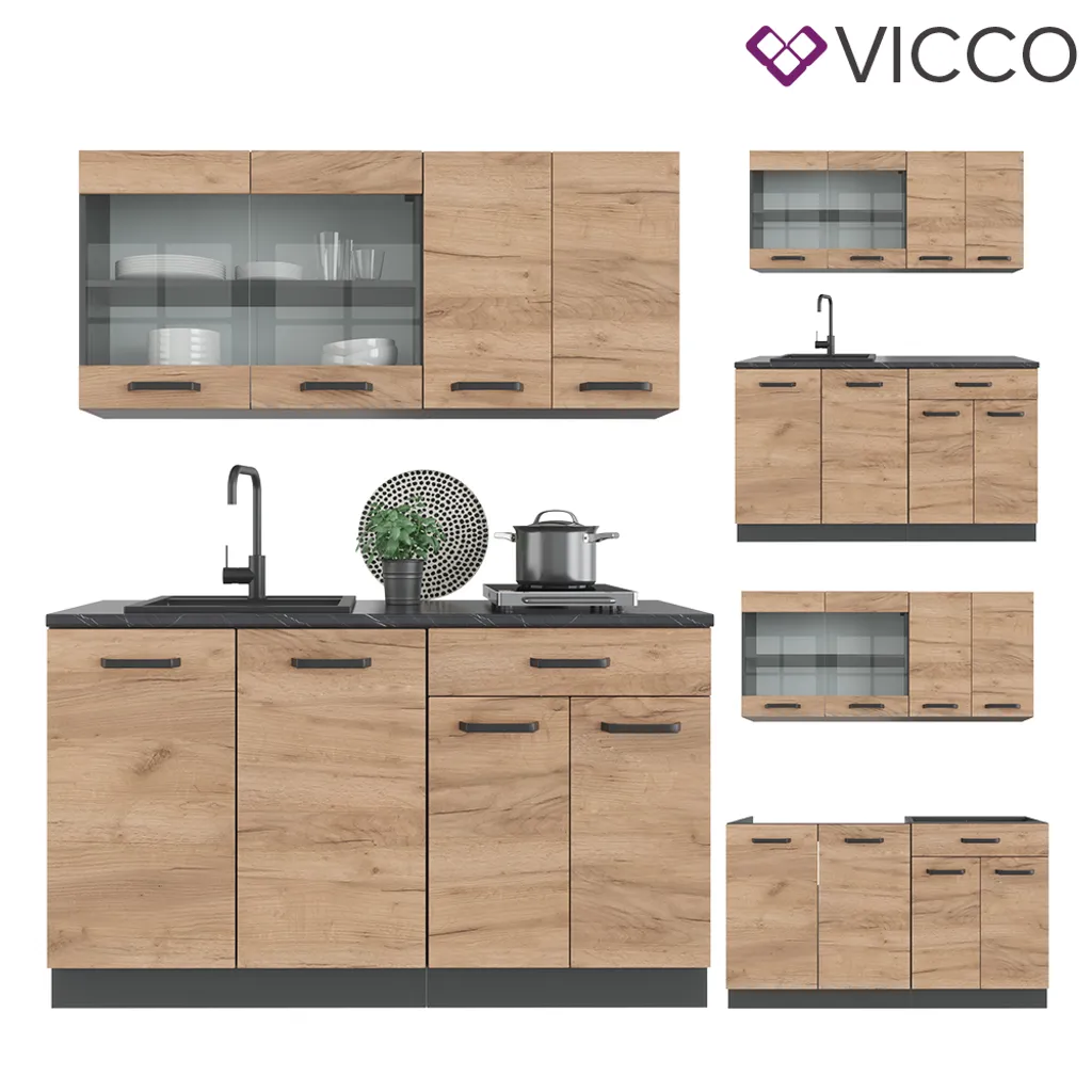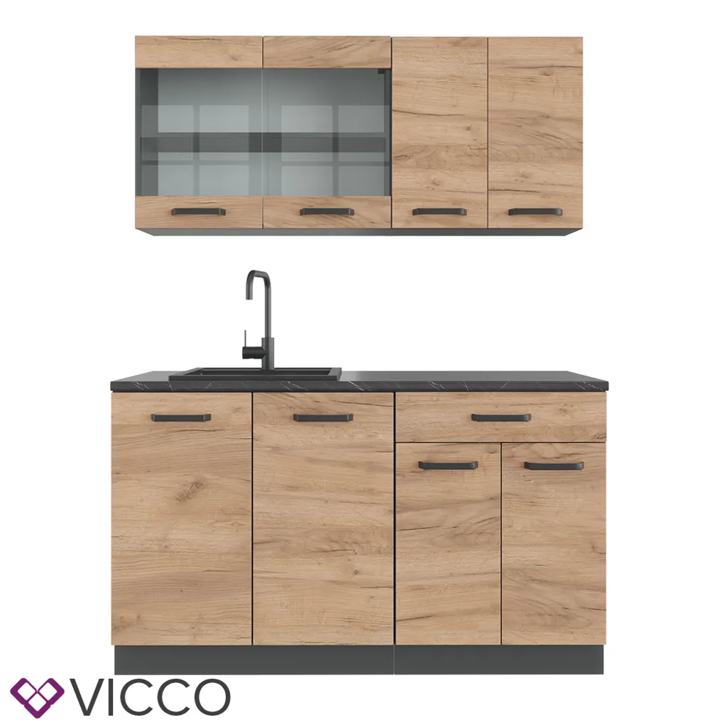 Vicco Küchenzeile R-Line Anthrazit Goldkraft 140 Cm Holzwerkstoff