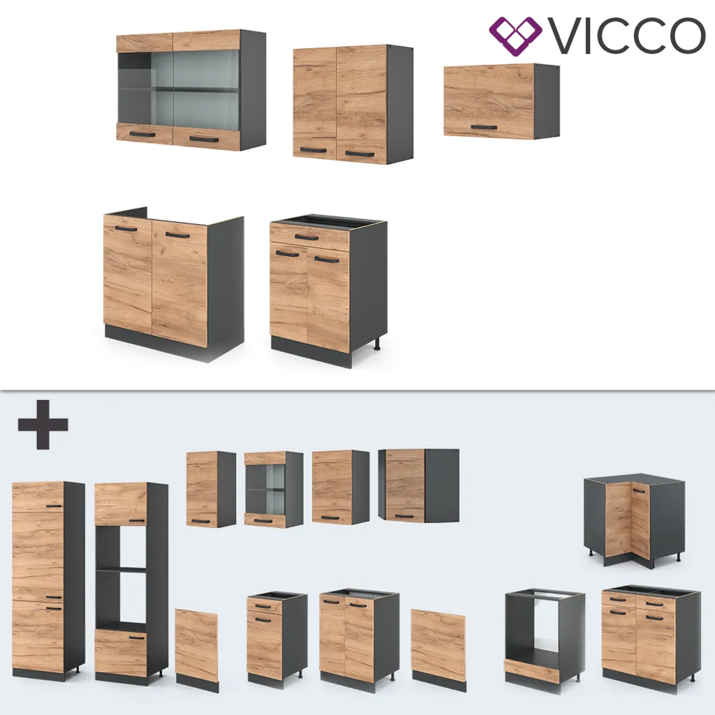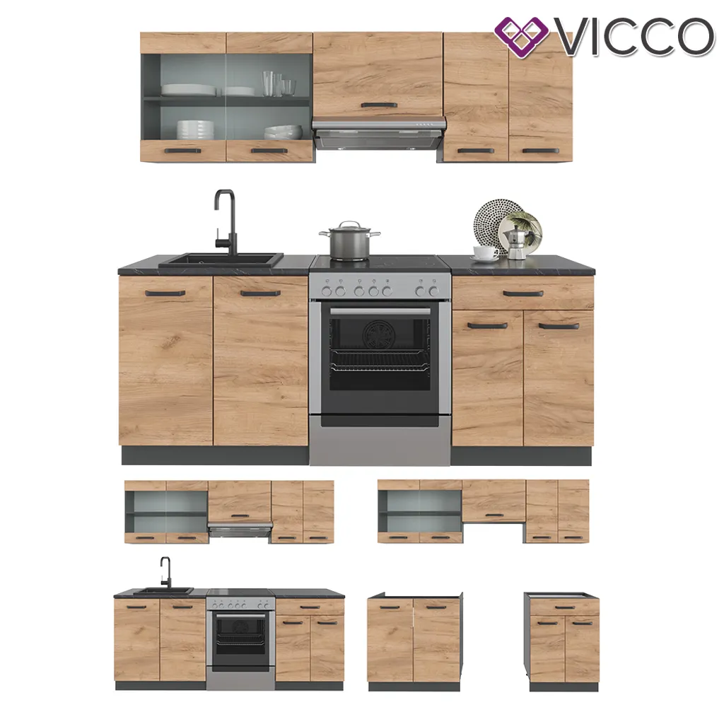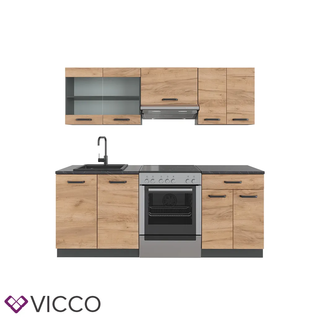 Vicco Küchenzeile R-Line Anthrazit Goldkraft 200 Cm Holzwerkstoff