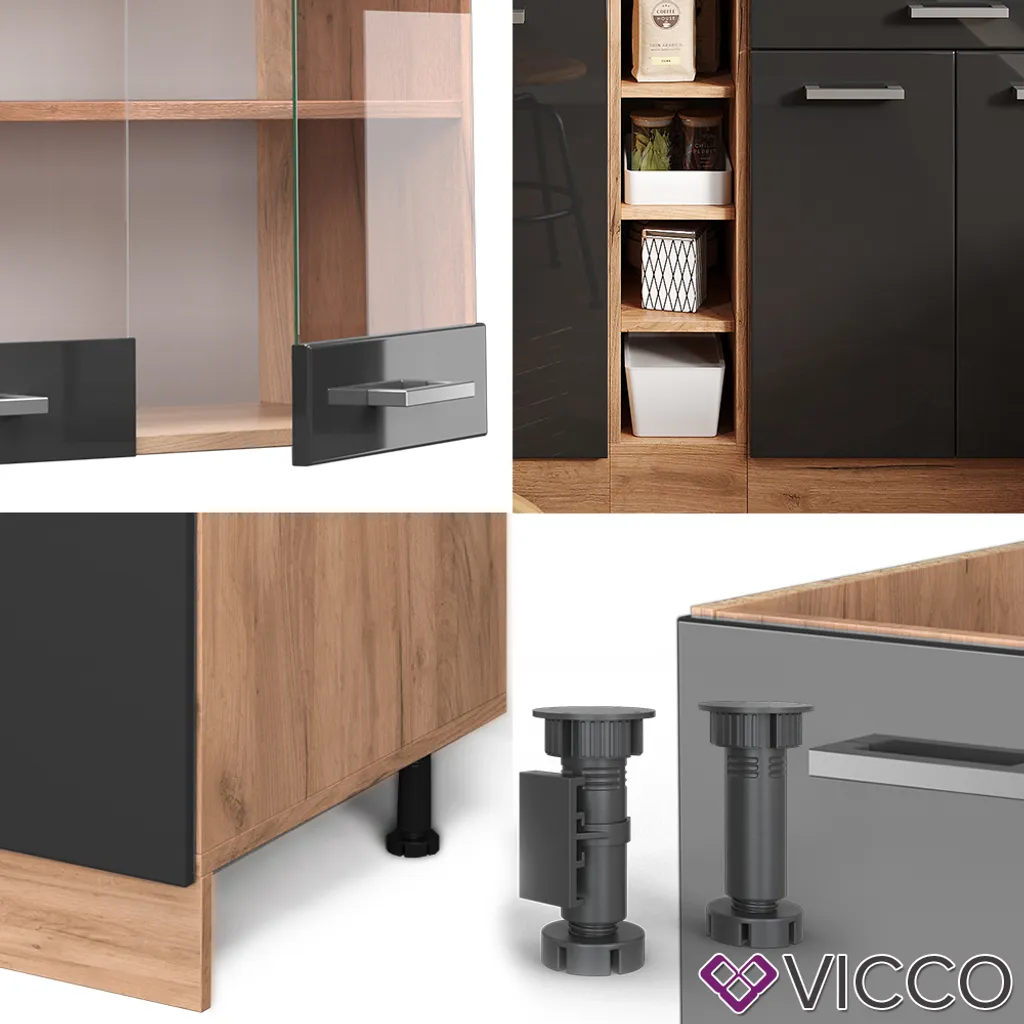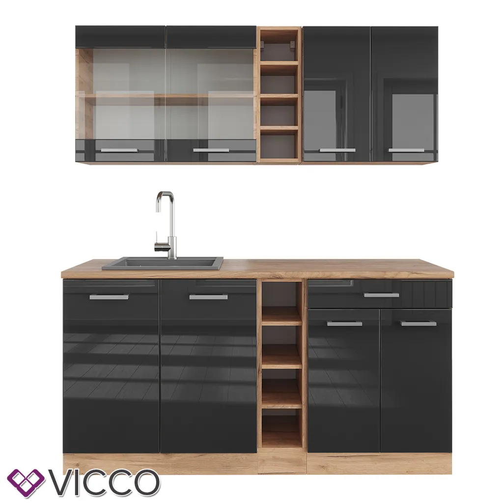 Vicco Küchenzeile R-Line Goldkraft Anthrazit Hochglanz 160 Cm Holzwerkstoff