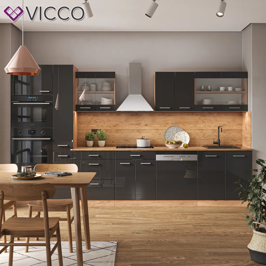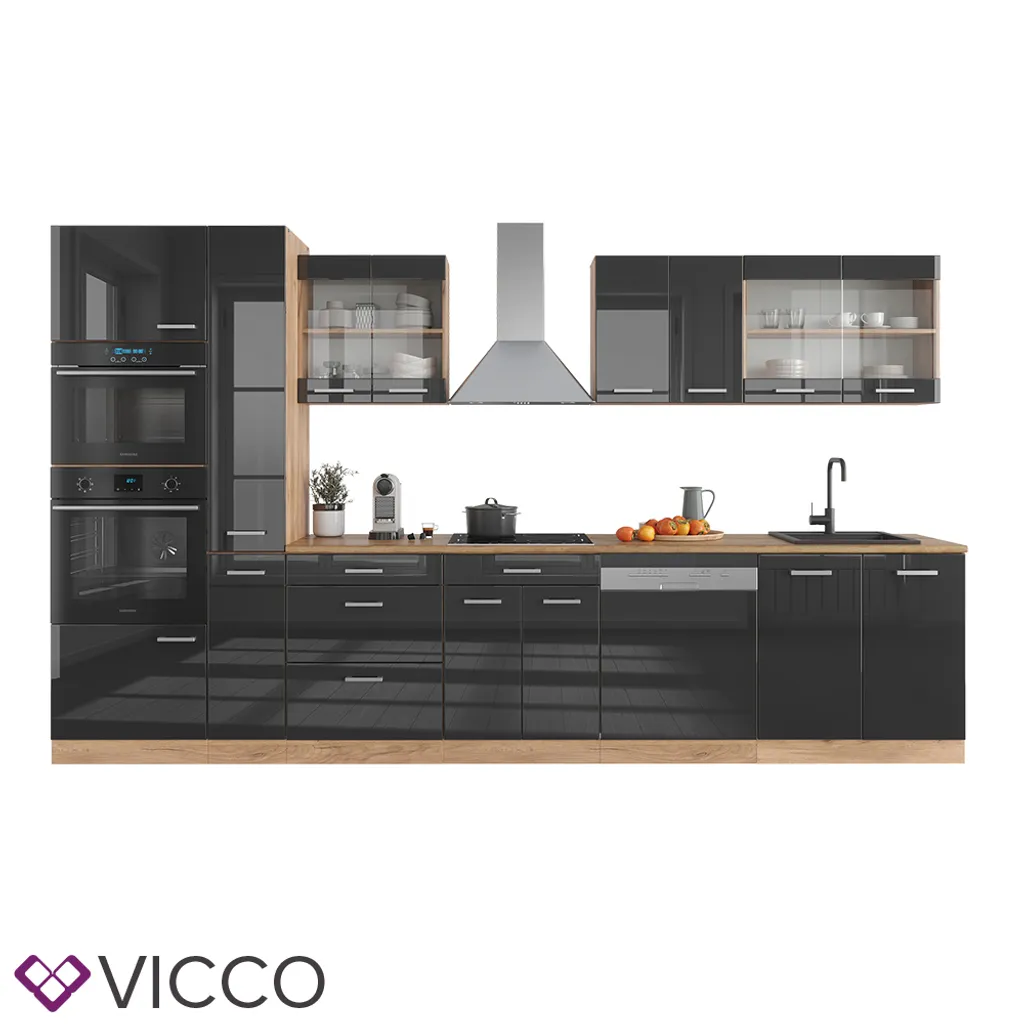 Vicco Küchenzeile R-Line Goldkraft Anthrazit Hochglanz 350 Cm Holzwerkstoff