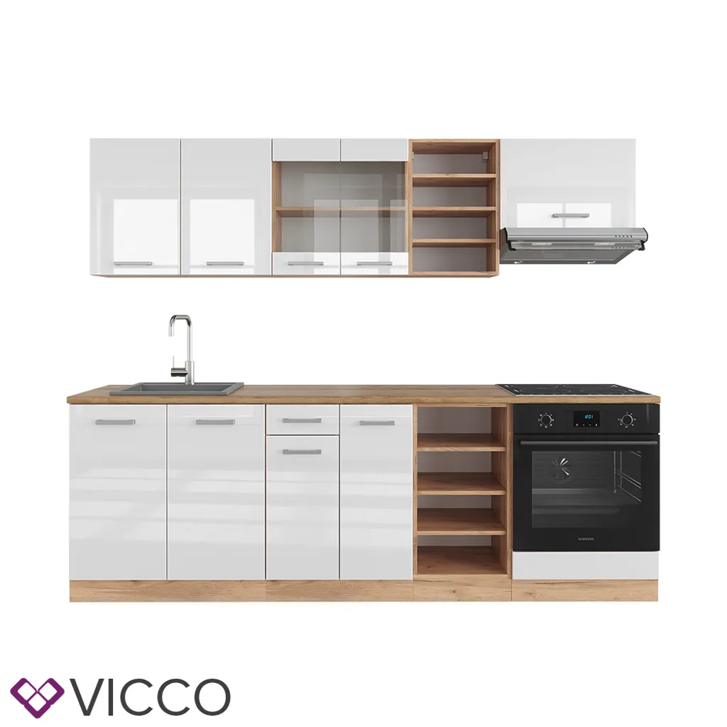 Vicco Küchenzeile R-Line Goldkraft Weiß Hochglanz 240 Cm Holzwerkstoff