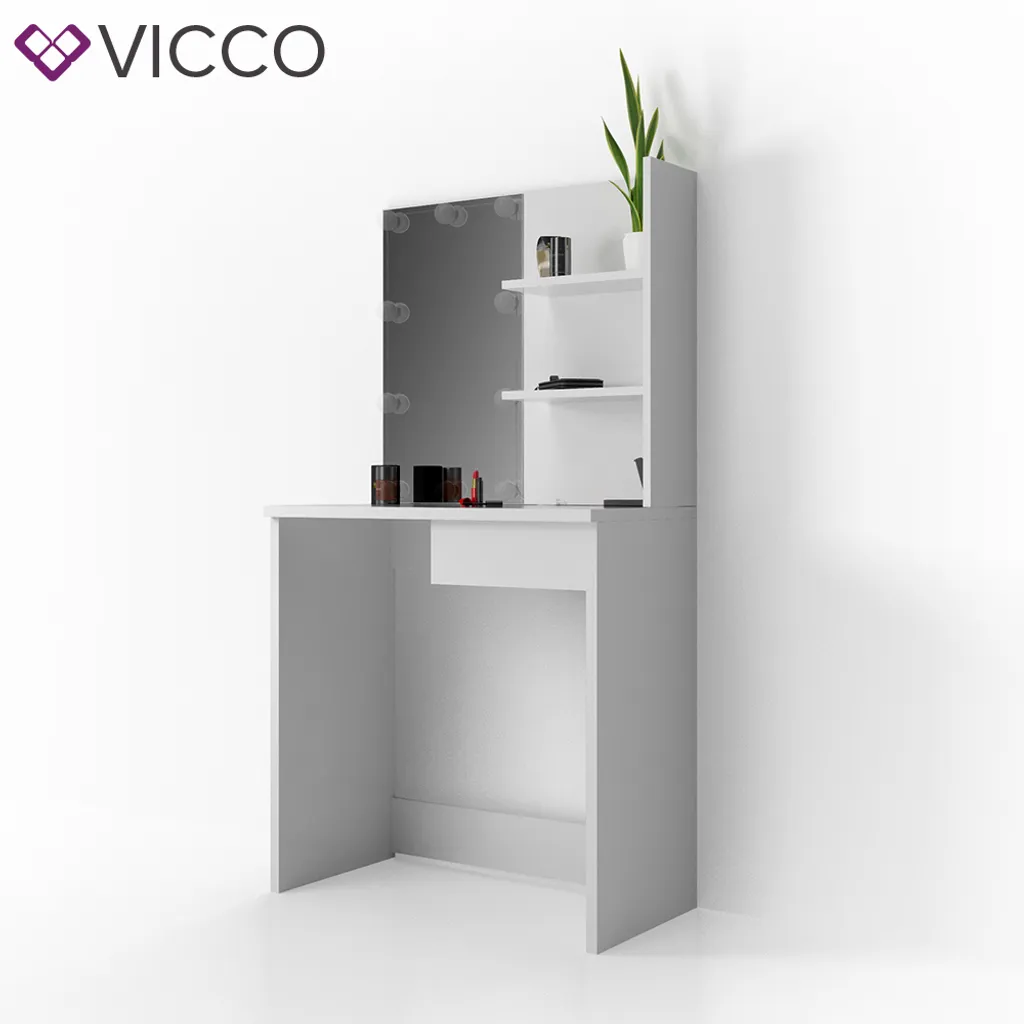 Vicco Schminktisch Dekos Kosmetiktisch Frisierkommode Frisiertisch Spiegel Weiß Inklusive LED-Lichterkette