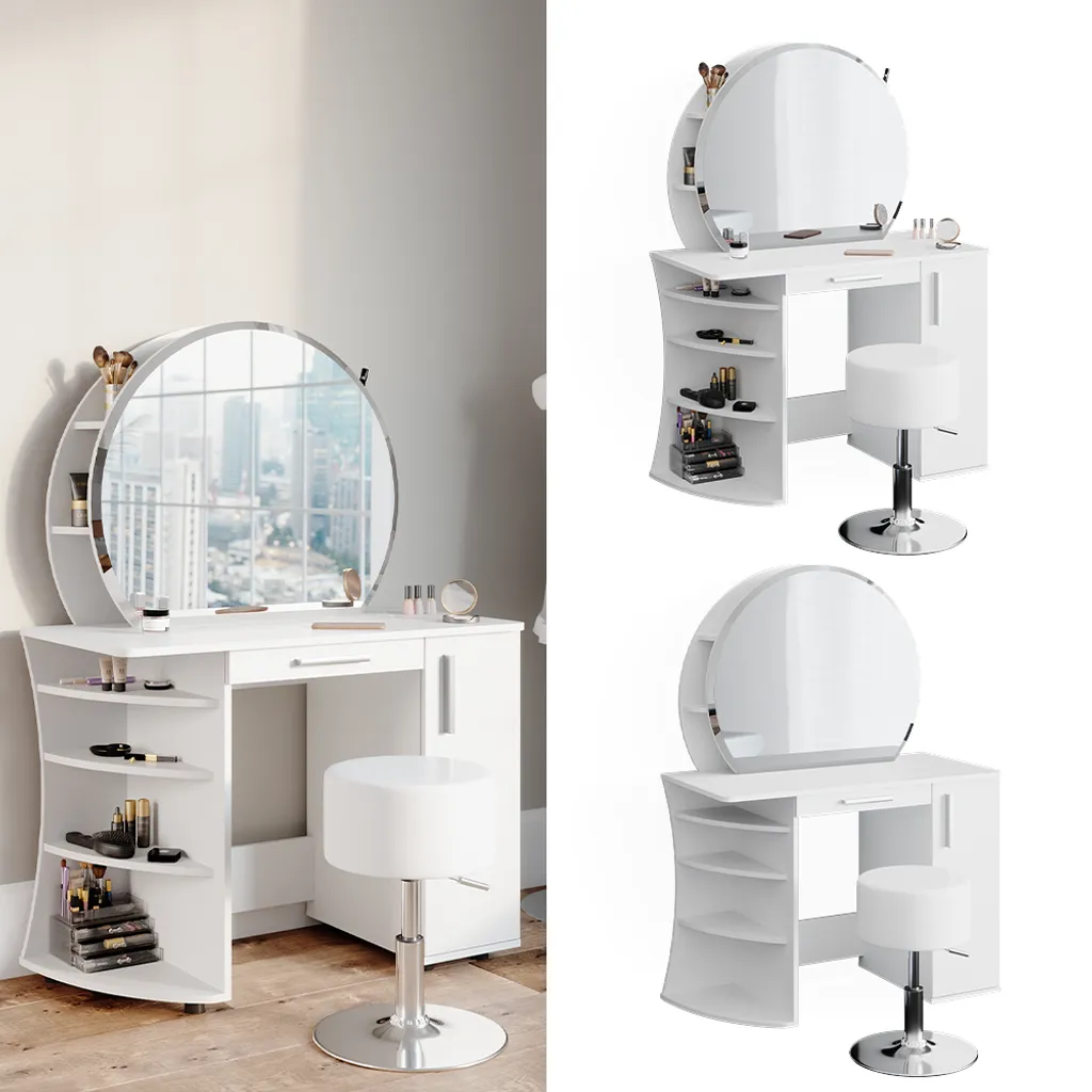 | Zusätzliche Varianten | Vicco Schminktisch Almina Weiß 100 x 143 x 50 cm Holzwerkstoff, Vicco Schminktisch Frisiertisch Frisierkommode Almina weiß mit Spiegel + Hocker |