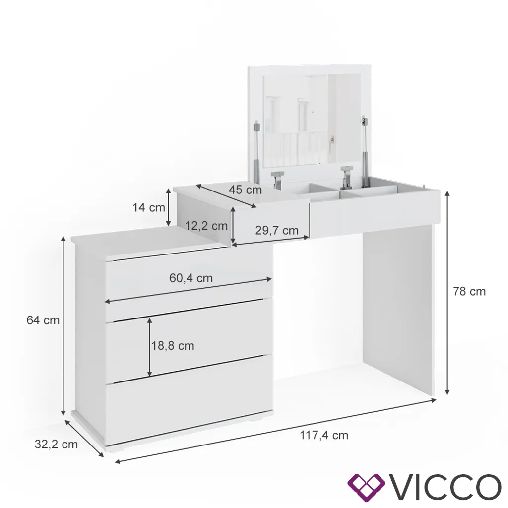 Vicco Schminktisch + Spiegelschrank + Hocker Fynnia Weiß 80,2 X 74 X 44,3 Cm Holzwerkstoff