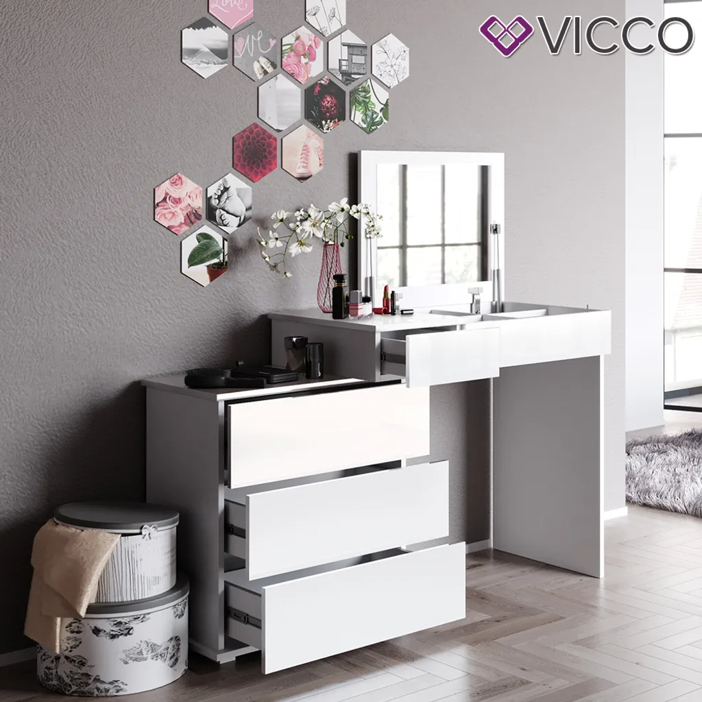Vicco Schminktisch Frisiertisch Frisierkommode Lotos Weiß Mit Spiegel Ablagen