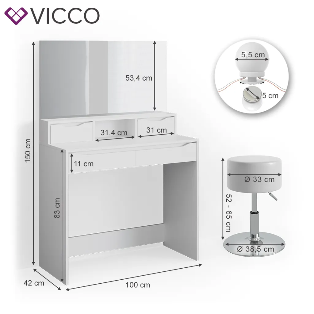 Vicco Schminktisch + Hocker + LED Ruben Weiß 100 X 150 X 42 Cm Holzwerkstoff