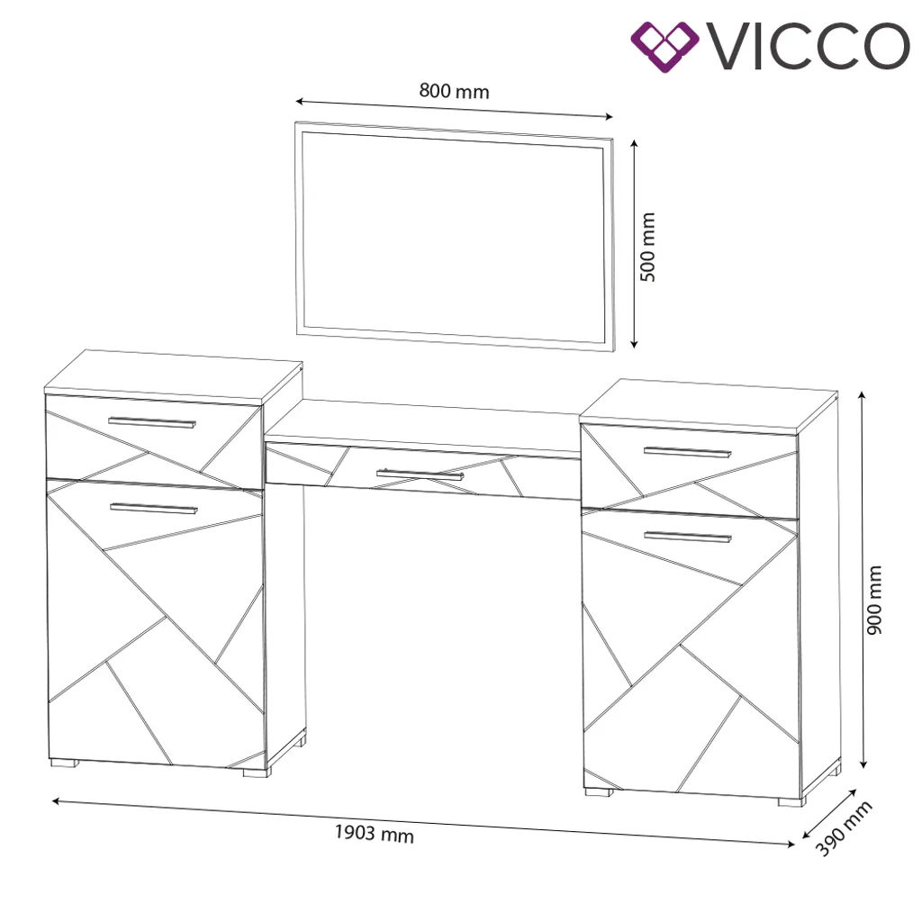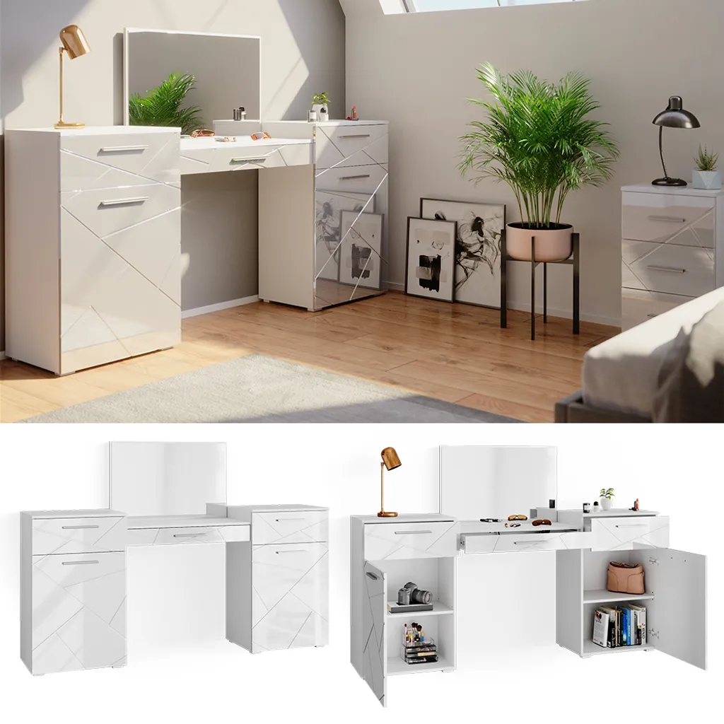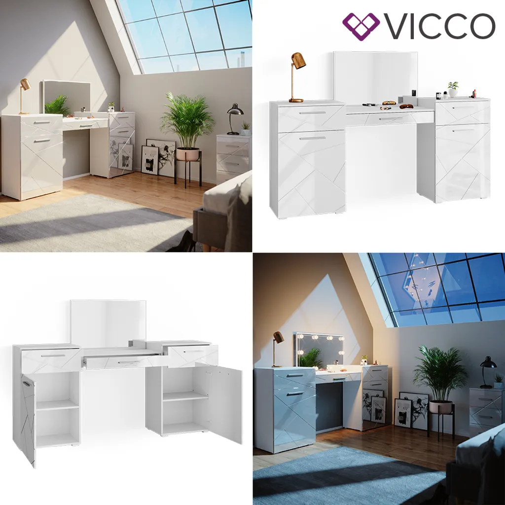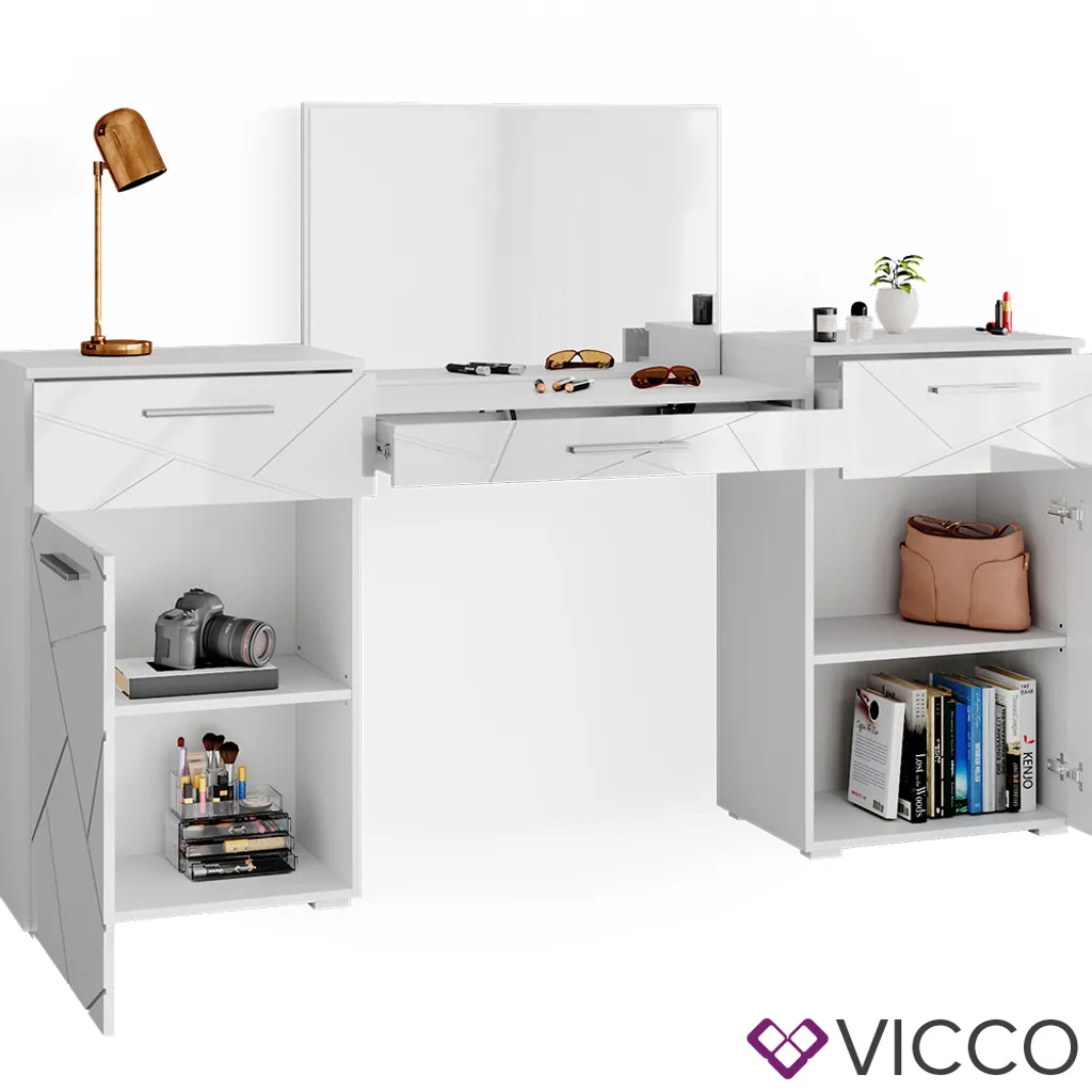 Vicco Schminktisch Irma Weiß Hochglanz 190,3 X 90 X 39 Cm Holzwerkstoff
