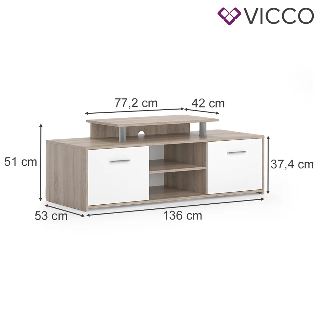 Vicco TV-Regal Lux Sonoma Weiß 136 X 51 X 53 Cm Holzwerkstoff