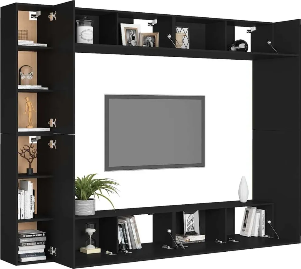 VidaXL 8-tlg. TV-Schrank-Set Schwarz Holzwerkstoff