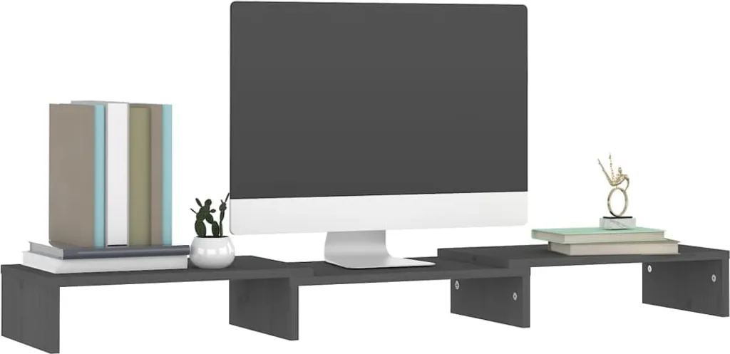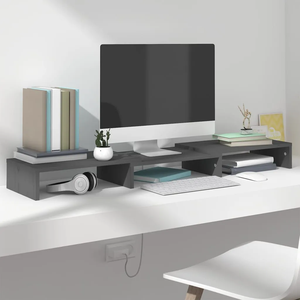VidaXL Monitorständer Grau 80x24x10,5 Cm Massivholz Kiefer