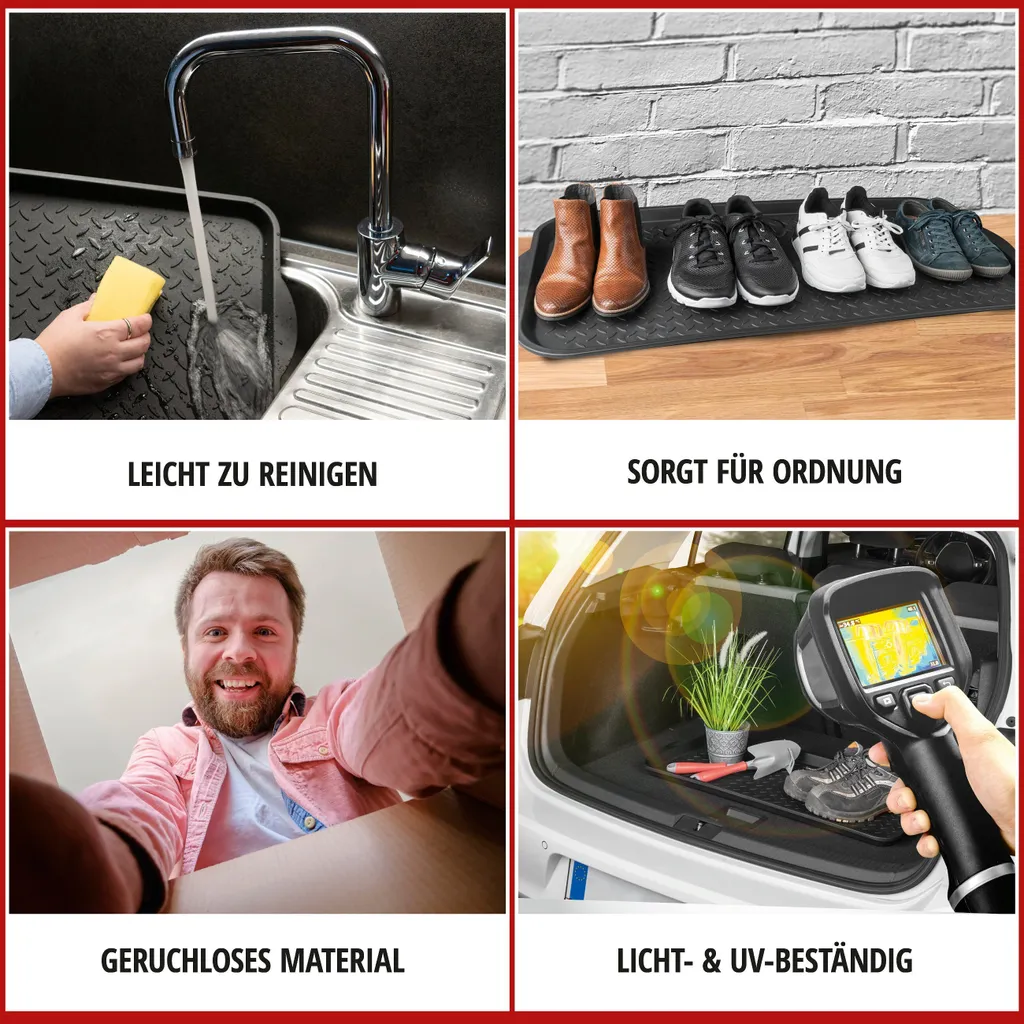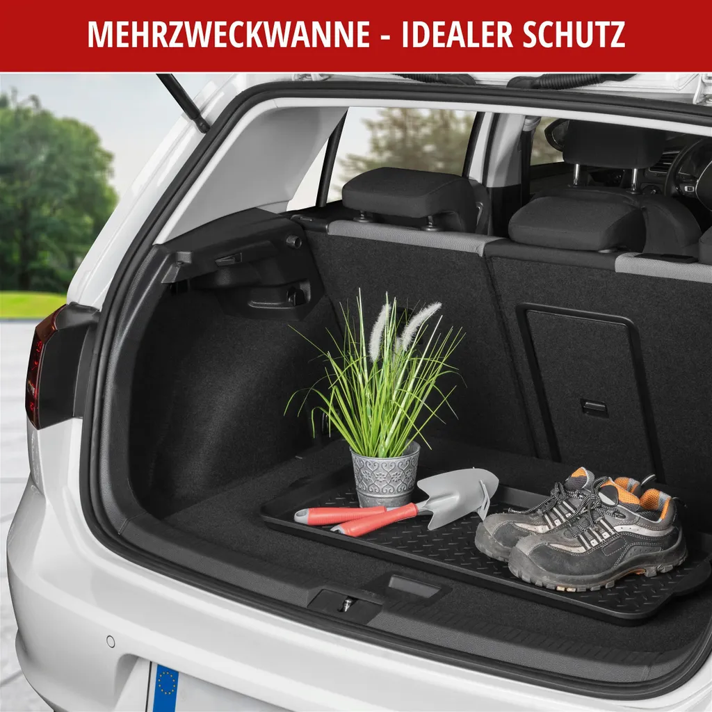 WALSER Mehrzweckwanne Safetray, Universale Kofferraumwanne, Kunststoffwanne, Auffangwanne, Schuhwanne, Ölwanne Small 77x35x3 Cm Schwarz 28100